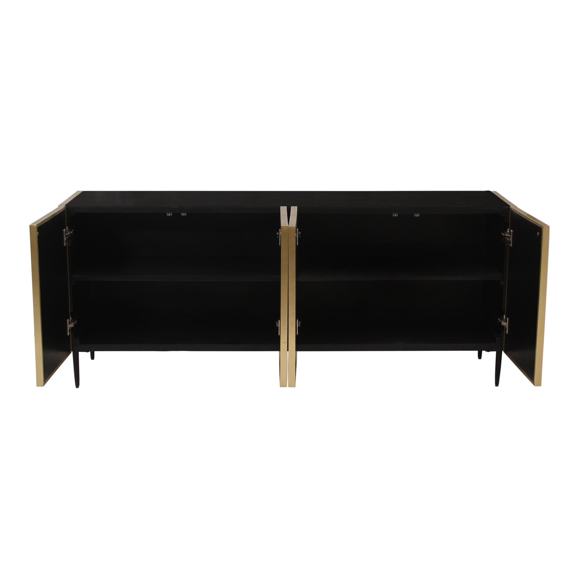 With signature art deco flair, the Brogan sideboard is ready to add some metallic magic to your space. Antique brass finished sides and doors give Brogan a look that’s decadent and refined, a bright burnished addition to your dining area. Its two doors open to reveal lots of room for all your dining accessories, while its tabletop serves as a home for your décor as well as a serving and carving station. Slender yet sturdy legs complete the look, ensuring Brogan’s status as an art deco icon as well as a space-saving storage solution.
