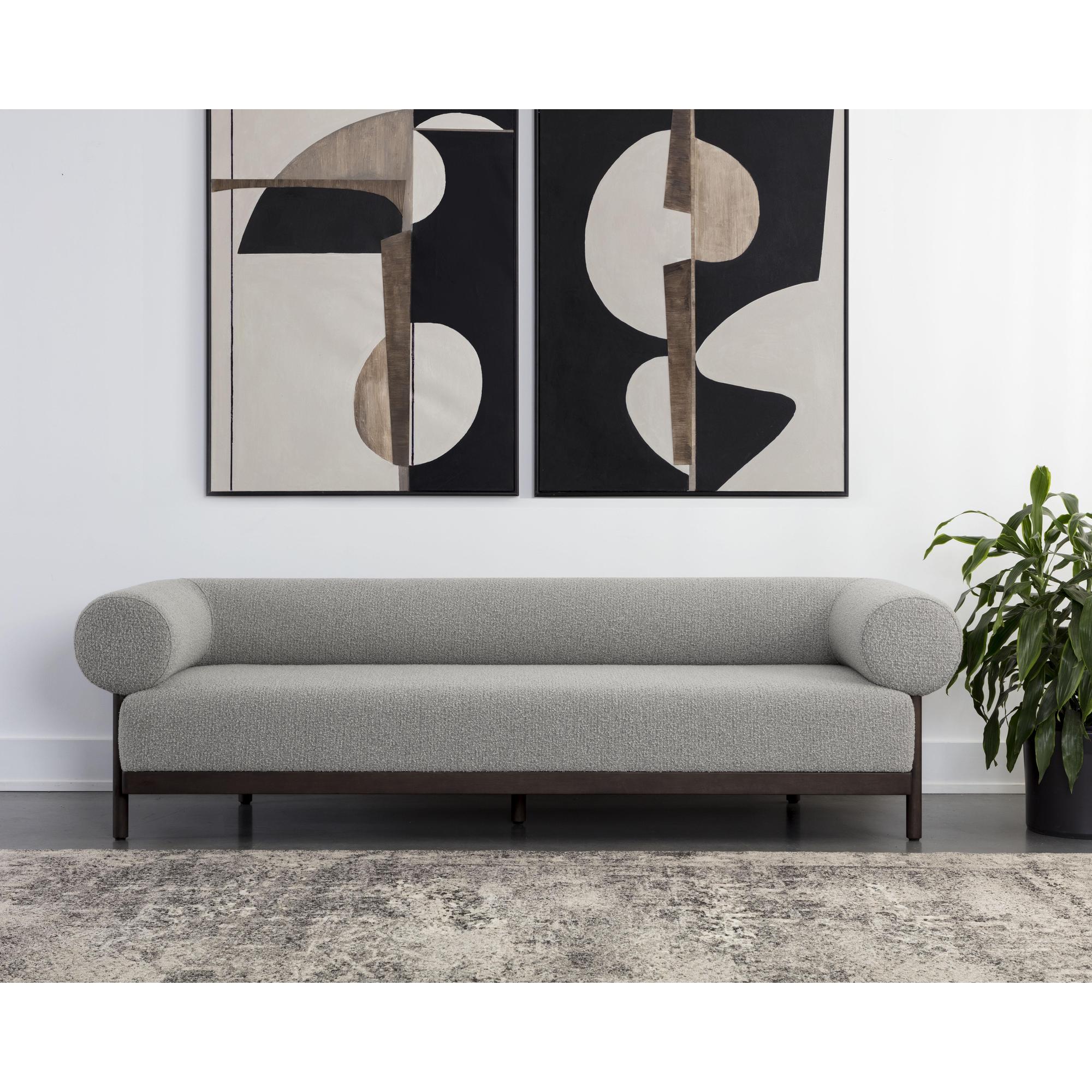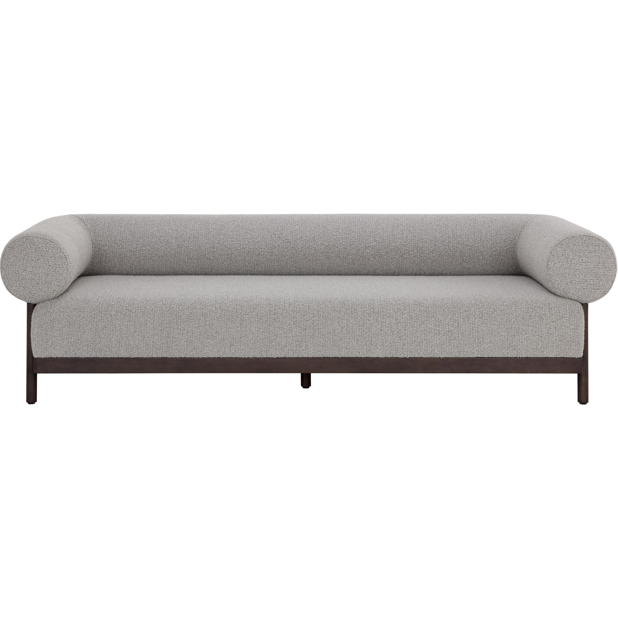 With its voluminous contours, the Bromley Sofa is a captivating presence in any living space. Upholstered in our altro cppuccino fabric, this sofa features wide arm and back rests for additional comfort. Brown oak wood base and detailing give a rustic element to the overall design. As wood is an organic, porous material, these pieces will contain natural variation of texture and may also exhibit fine indentations and cracks. Wood pieces will also display a disparity of colour and grain, and visible knots and burls that add to the character of each piece.
