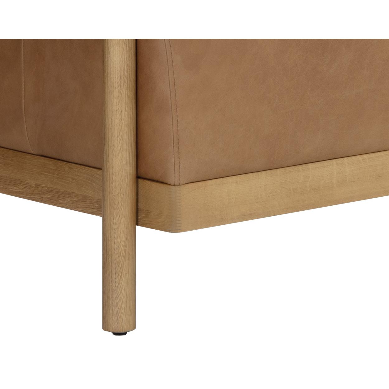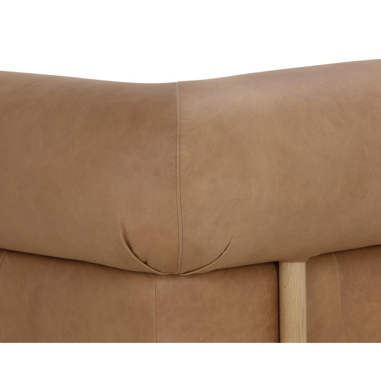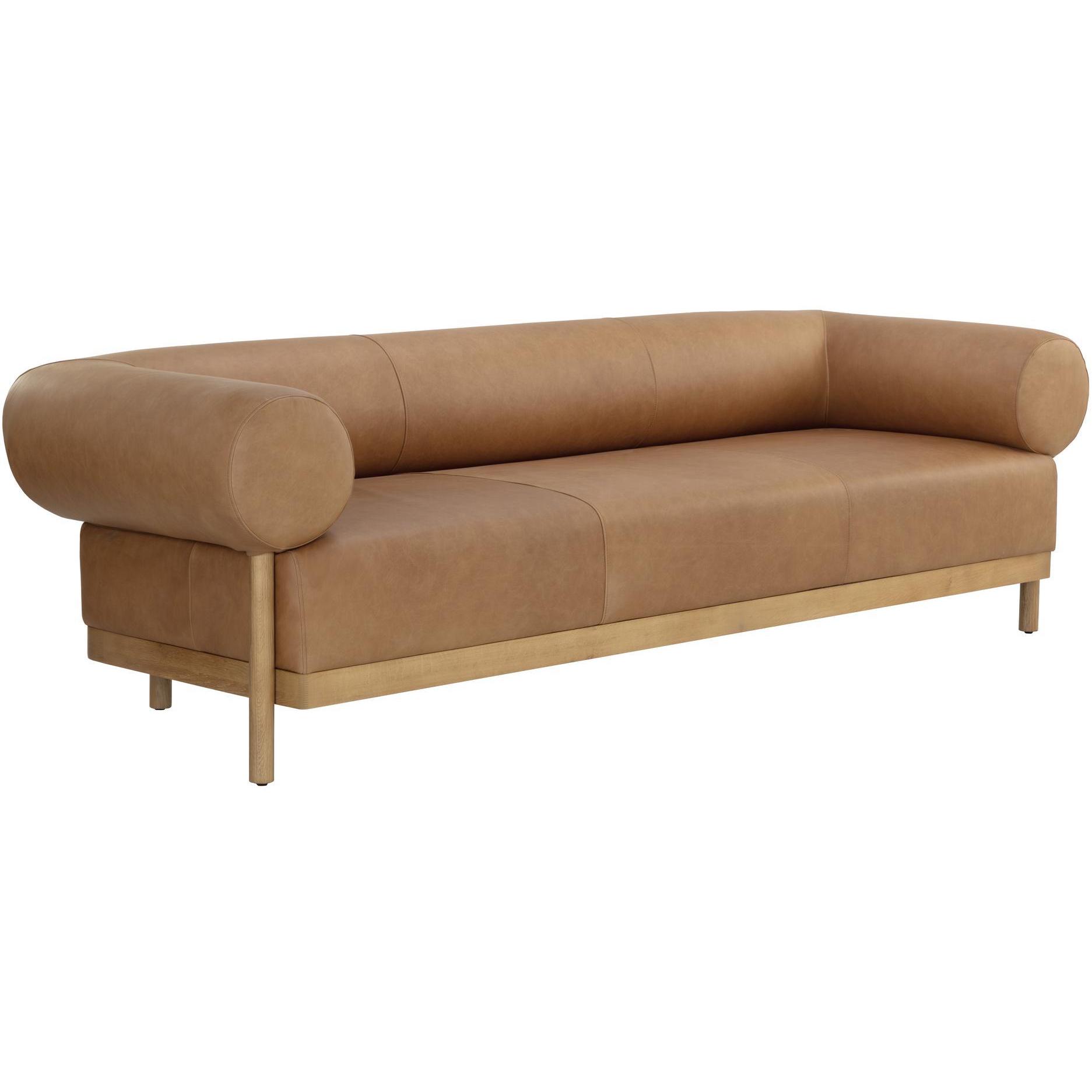 With its voluminous contours, the Bromley Sofa is a captivating presence in any living space. Upholstered in our luxurious ludlow sesame leather, this sofa features wide arm and back rests for additional comfort. Rustic oak wood base and detailing give a rustic element to the overall design. Handle with Care: This design has been crafted with 100% leather. Leather is a natural material; as such, colour variations, markings, wrinkles, grooves and light scratches are acceptable and appreciated characteristics. No two pieces are alike. Visit our Product Care page for more information on how to ensure the lasting beauty of this piece. As wood is an organic, porous material, these pieces will contain natural variation of texture and may also exhibit fine indentations and cracks. Wood pieces will also display a disparity of colour and grain, and visible knots and burls that add to the character of each piece.
