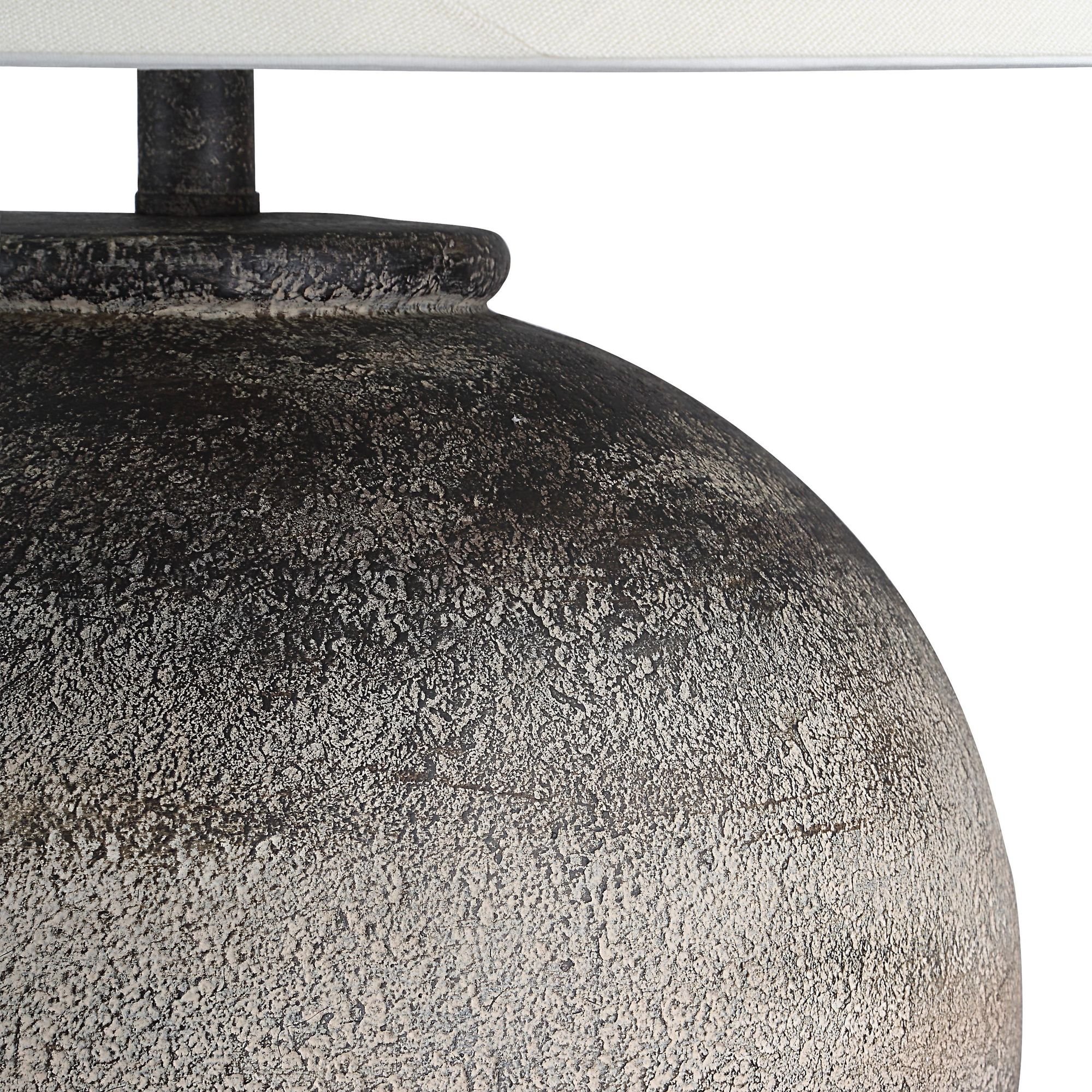 Inject a warm, earthy touch in any home with the stunning Bronce table lamp. Designed with style in mind, it features a richly textured body in shades of dark brown and beige, brass-plated fittings and a tapered ivory linen shade. Placed in a bedroom, living room, or dining room, this lamp offers adjustable lighting thanks to a 3-way switch, making it a great choice as a finishing touch in any room.