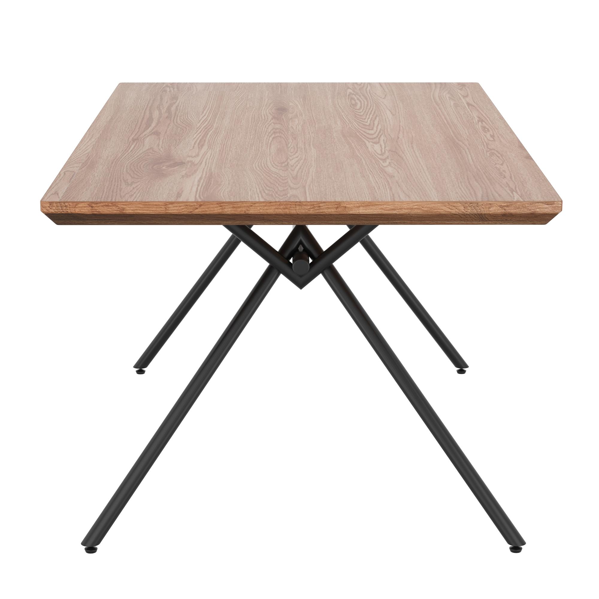 - Solid engineered wood table top with laminated veneer in a natural wood grain