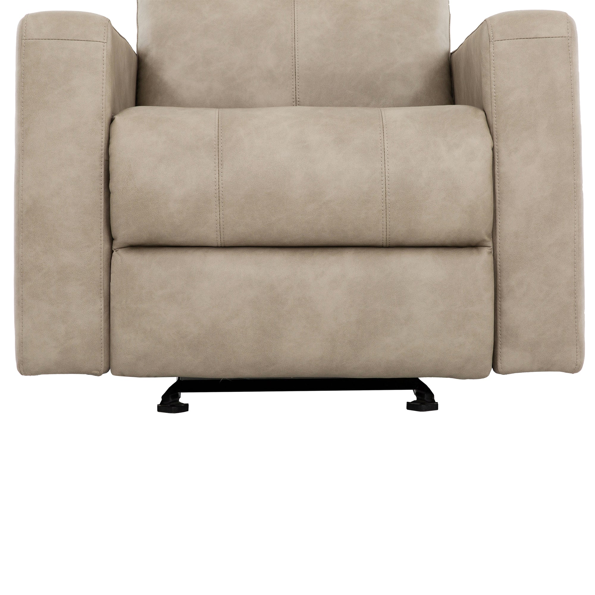 Settle into the perfect blend of motion and comfort with the Bruce Glider Recliner. Designed for easy relaxation, it combines a smooth gliding base with a manual recline that adjusts at your pull. Plush foam and pocket coil seating deliver lasting support, while the tall backrest offers full-body comfort through every recline angle. Upholstered in soft faux leather and built with a reinforced frame, Bruce keeps relaxation effortless and durable — day after day.