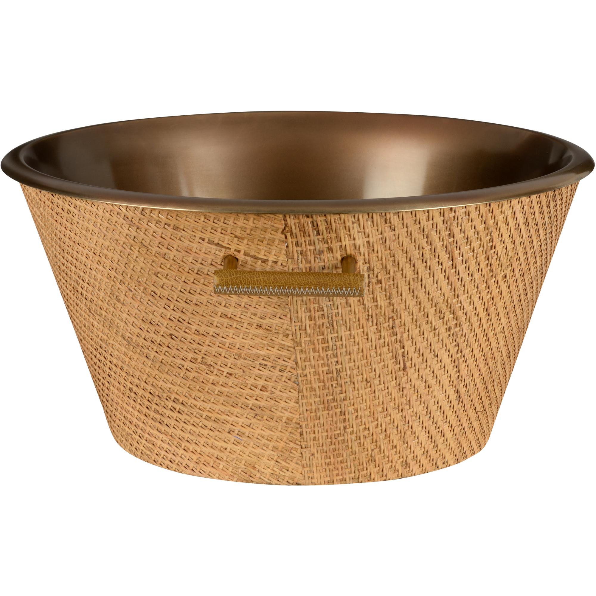 Impress guests at your next cocktail party with our Brunching Beverage Chiller. This durable design is made of steel covered in natural woven cane that provides a coastal vibe. A removable steel liner with an antique brass finish allows for easy clean up.