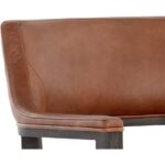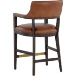 A mid-century modern counter stool with an open back design. Stocked in shalimar tobacco leather with an exposed solid oak wood frame. Handle with Care: This design has been crafted with 100% top grain leather. Leather is a natural material; as such, colour variations, markings, wrinkles, grooves and light scratches are acceptable and appreciated characteristics. No two pieces are alike. Visit our Product Care page for more information on how to ensure the lasting beauty of this piece. As wood is an organic, porous material, these pieces will contain natural variation of texture and may also exhibit fine indentations and cracks. Wood pieces will also display a disparity of colour and grain, and visible knots and burls that add to the character of each piece.