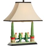 Add a touch of nature to your home with this delightful Budgies Lamp. Crafted of hand painted and glazed fired ceramic, five colorful parakeets are perched upon a fence. A light tan shade with black trim directs light to highlight the birds and bring ample lighting to your space. The Newport Mansion collection (green, yellow, orange)