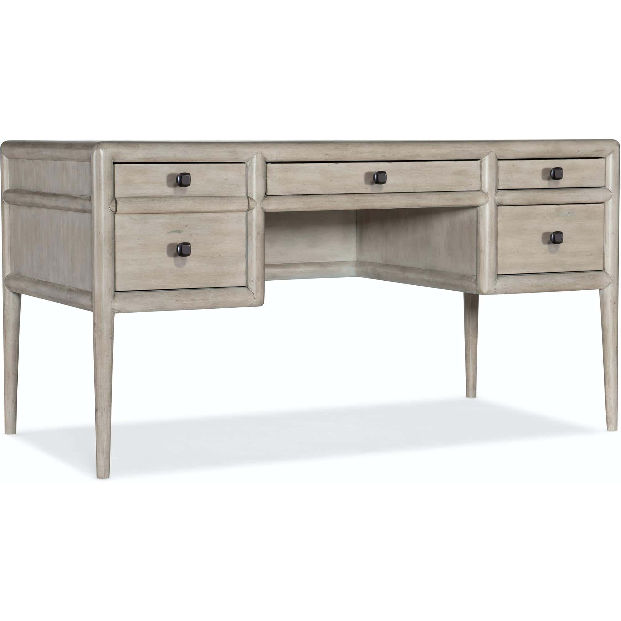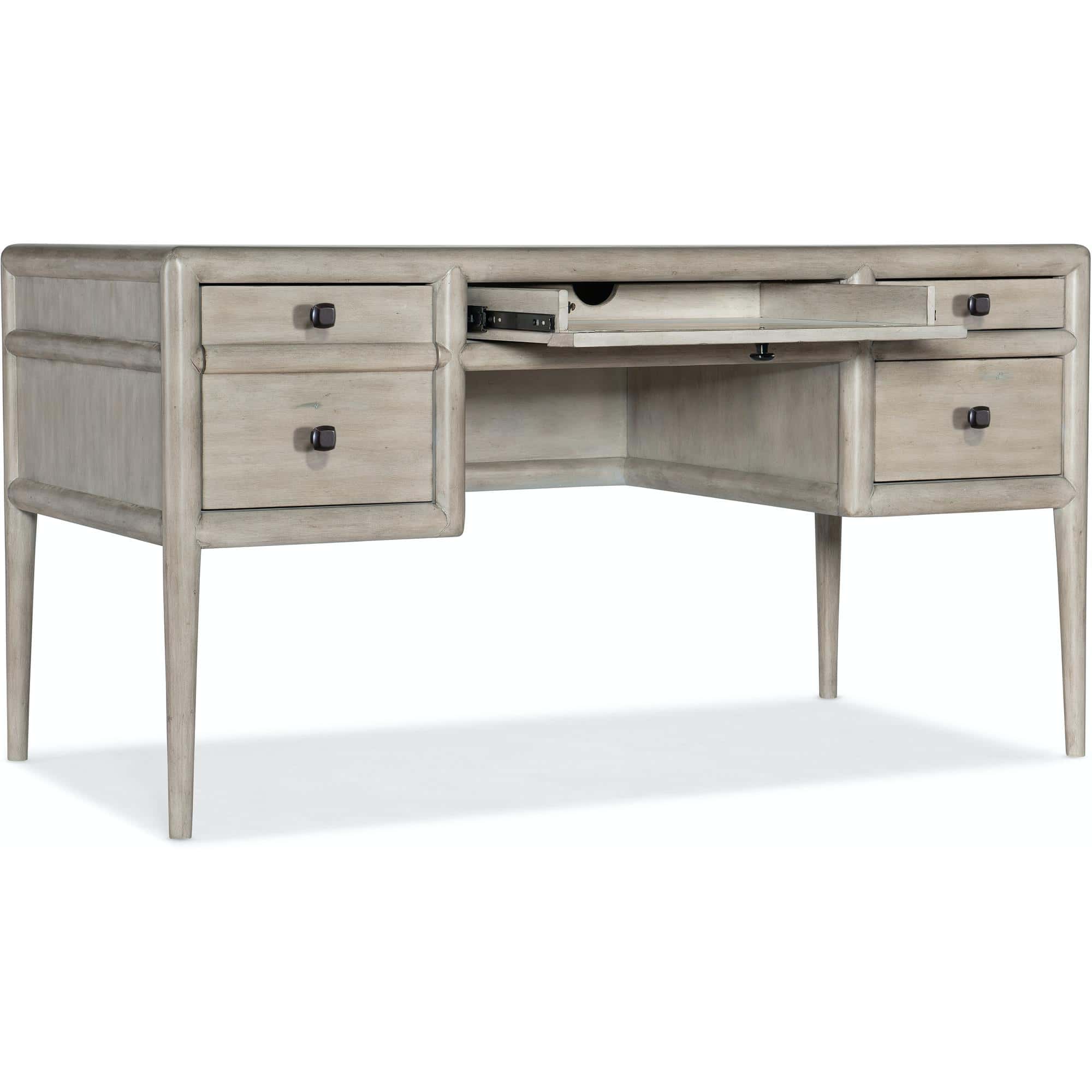 Center drawer has a drop-front for keyboard use and wire cutout in the back of drawer