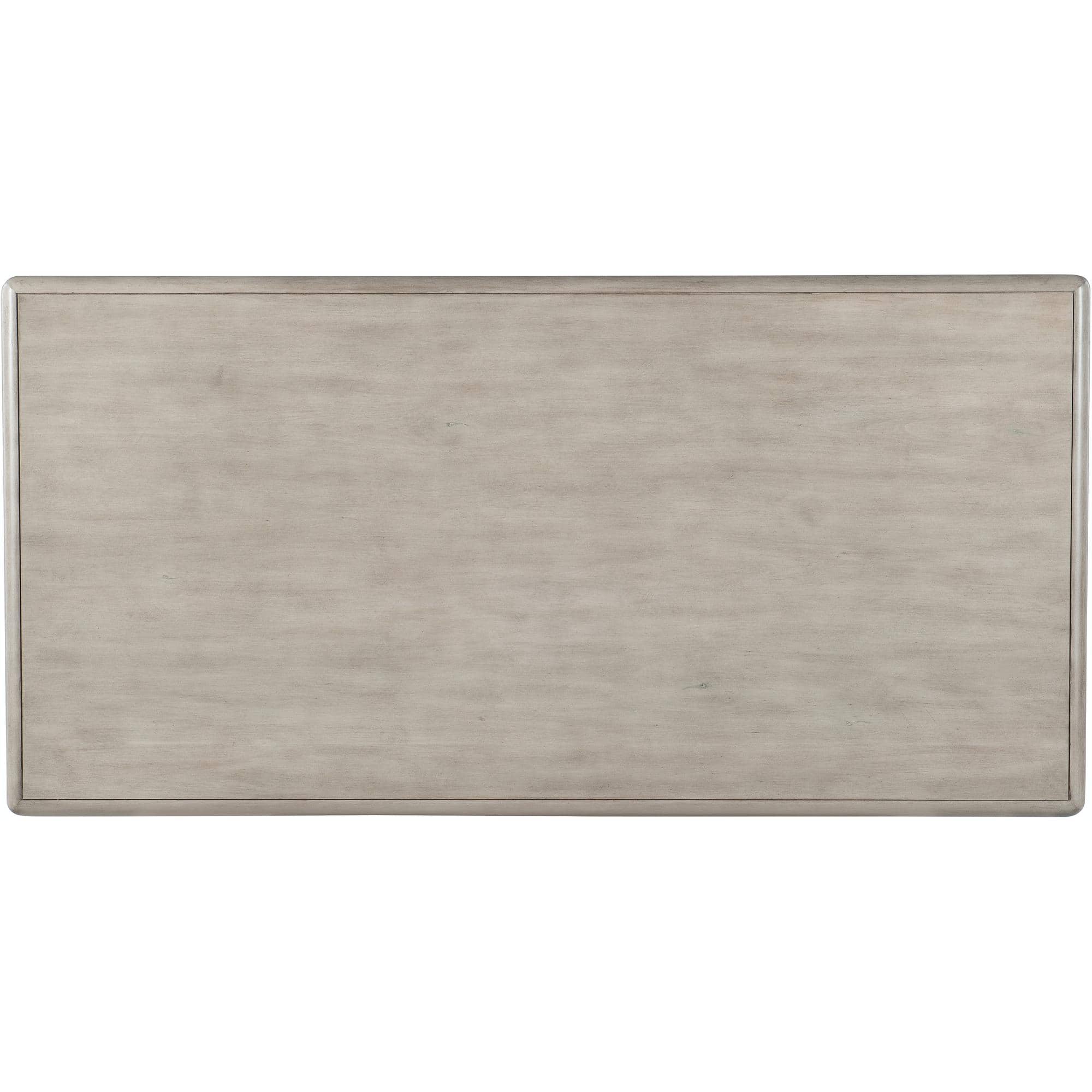 Right bottom drawer has a false bottom with finger hole for hidden storage and is on 100lb full extension metal ball bearing slides