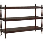Crafted from rich mango wood, the cart features three spacious open shelves, offering ample open storage for your favorite beverages, glassware, and bar essentials. The natural wood grain adds warmth and character, while the sleek brass wheels provide a touch of elegance and easy mobility. Ideal for entertaining or simply adding a stylish storage solution to your space, this bar cart combines practicality with a sophisticated design, making it a standout piece in any home.