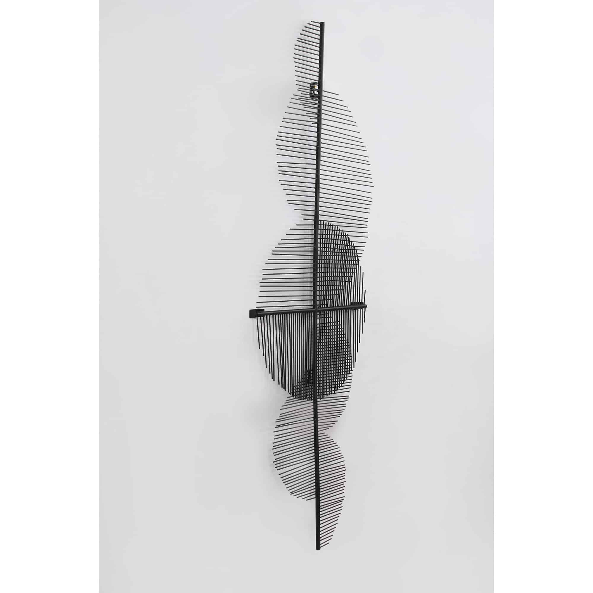 Subtle elegance exudes from this sculptural wall art. Made from black powder coated iron, it is solid and light at the same time. Hang over the sofa to showcase its length and interest.