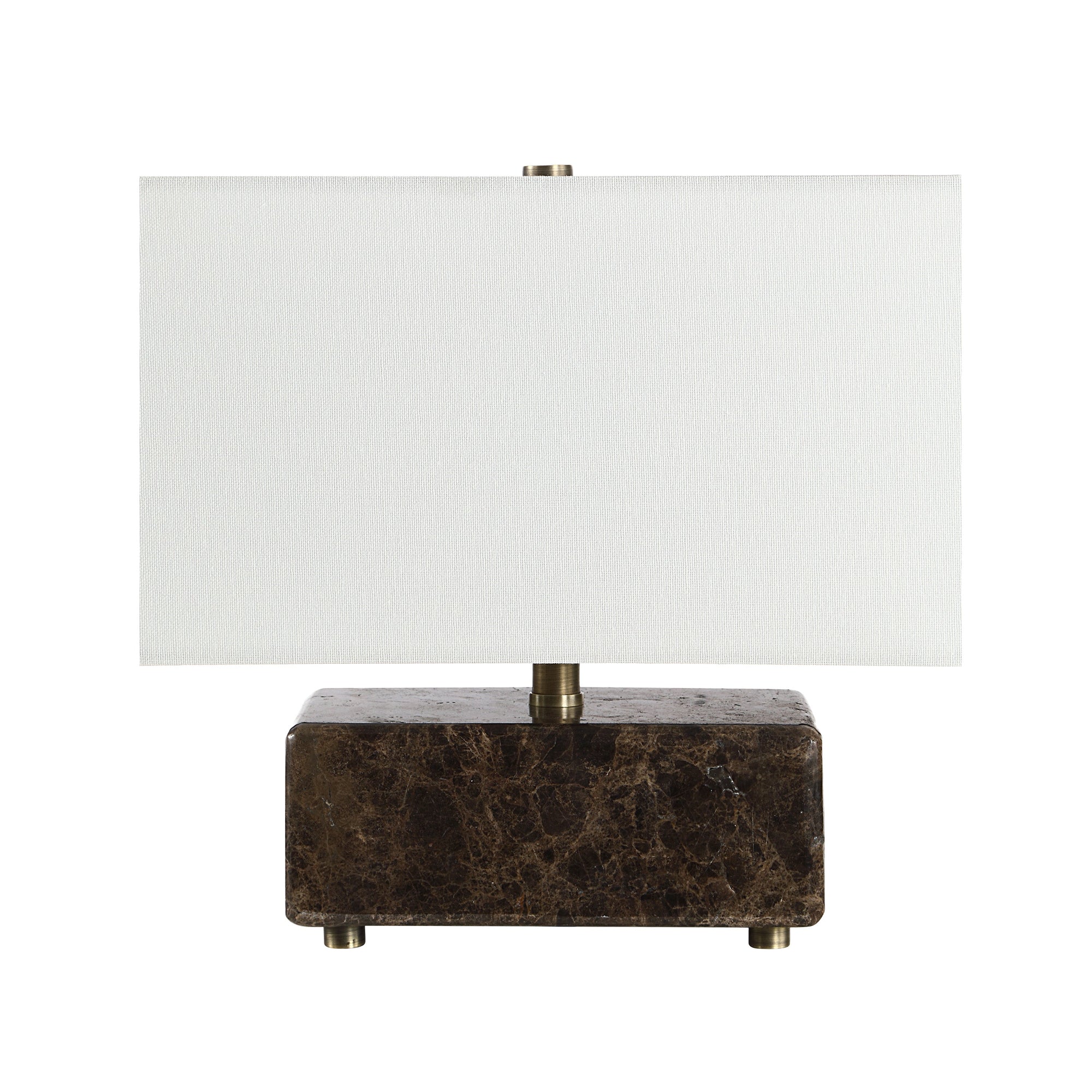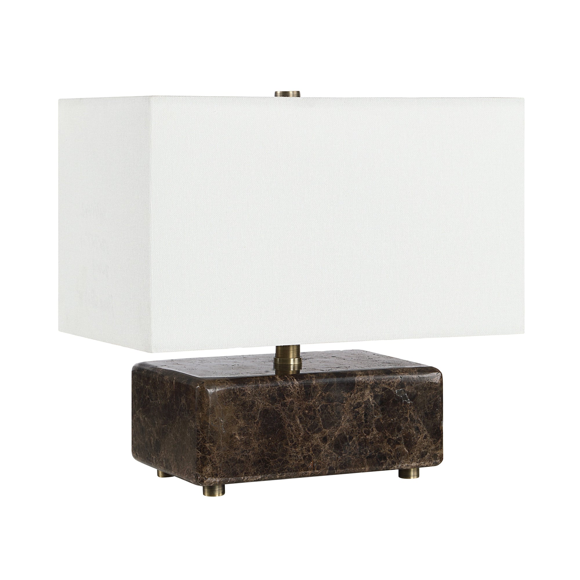The Cabo table lamp makes a confident style statement with its bold, sculptural presence. Crafted from richly veined Emperador marble, its rectangular silhouette creates a striking focal point, complemented by a clean-lined beige linen shade. Glamorous yet grounded, this lamp adds depth, texture, and a touch of luxury to any room seeking a standout accent.