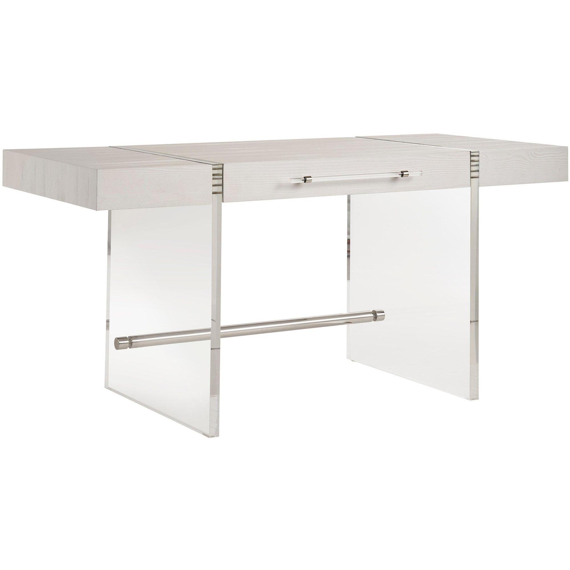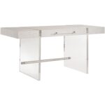 Watch as the Cabo Writing Desk seamlessly brightens up any home office with its white sand finish accentuated by acrylic legs and silver hardware.