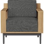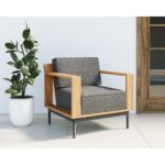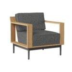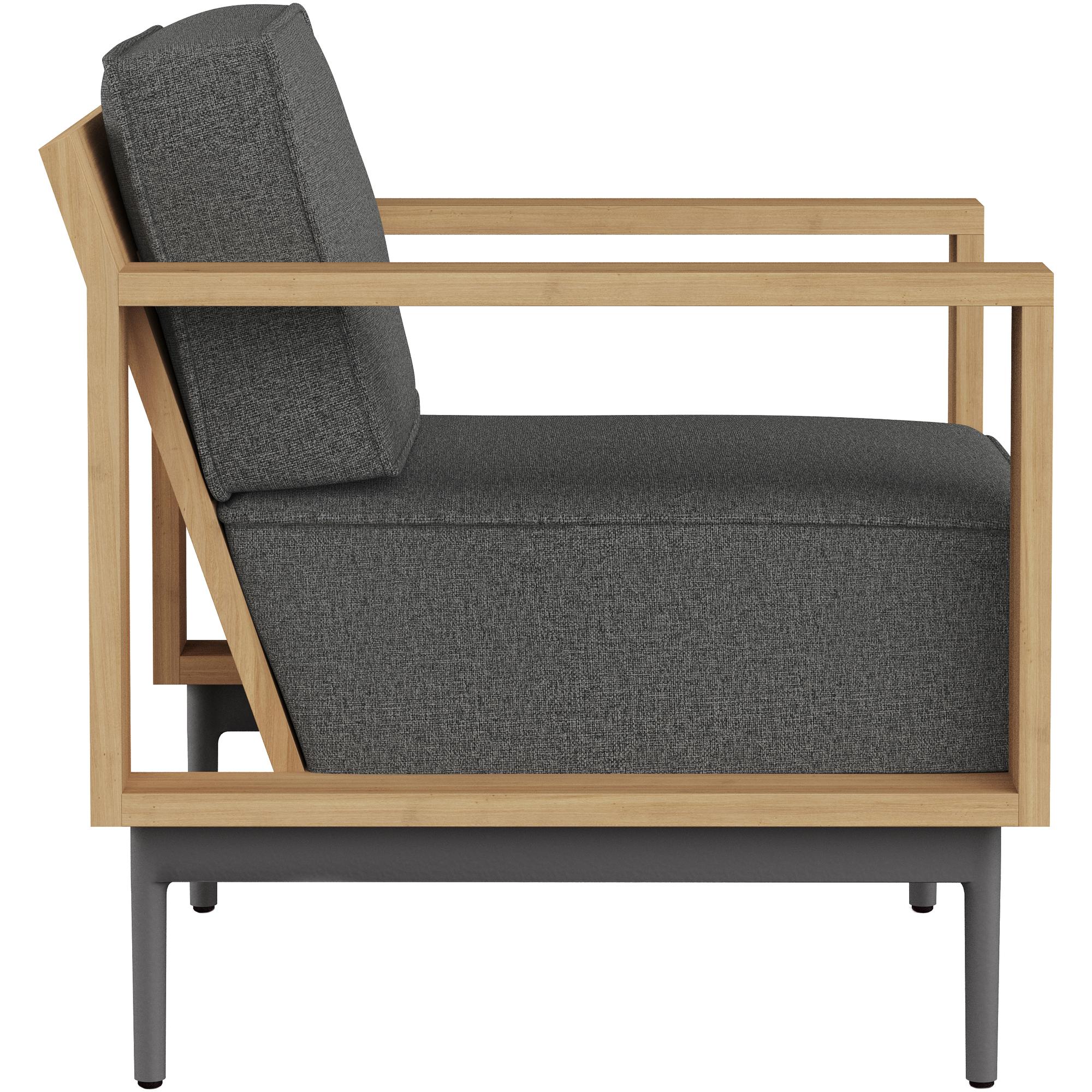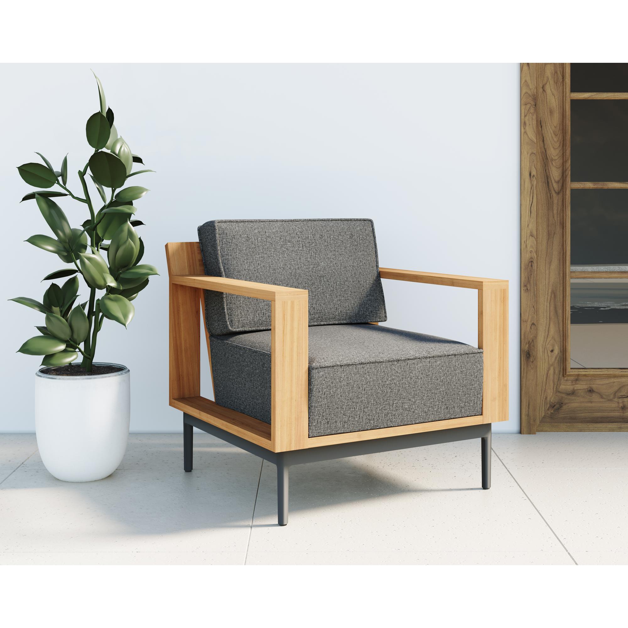 Create an incredibly comfortable outdoor retreat with this modern armchair from the Outdoor by SUNPAN collection. This design features a sleek frame in solid teak wood and dark grey powder-coated aluminum. A deep seat in gracebay grey fabric completes the look. Suitable for indoor and covered outdoor spaces.
