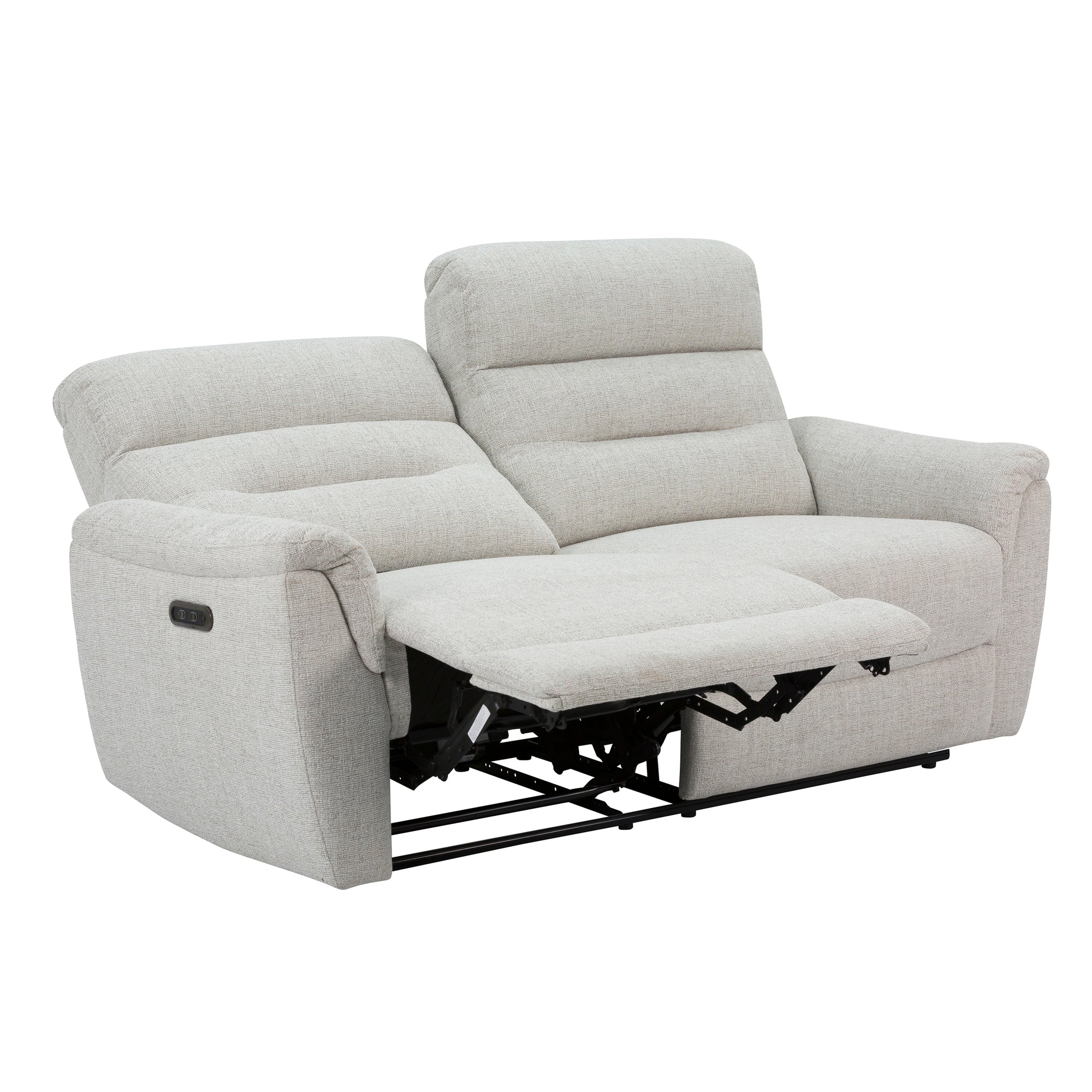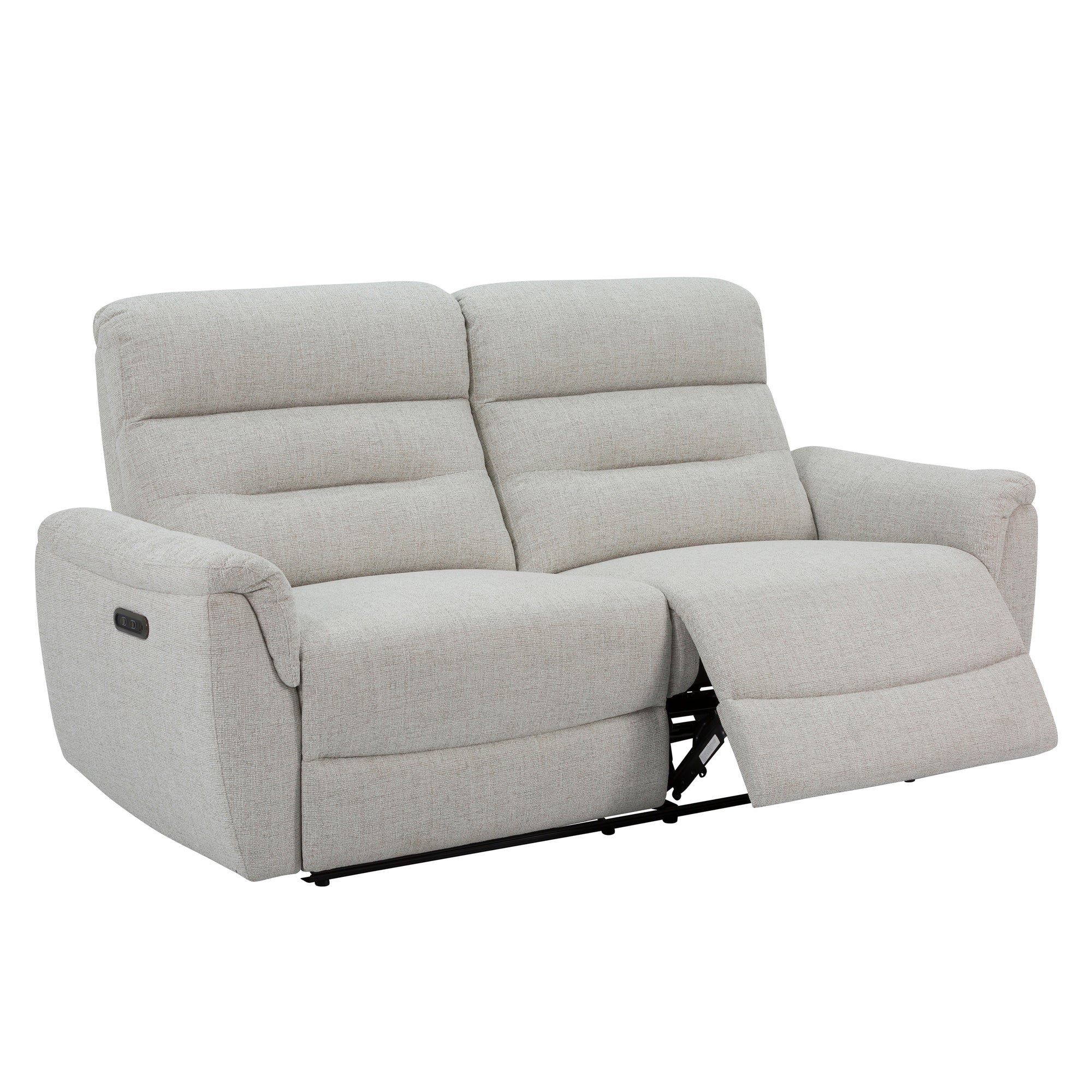 Lean back and let the Cain Power Reclining Sofa do the work. With two smooth, motorized recliners and plush foam cushioning, it’s built for serious lounging with a sleek, modern edge. Wrapped in soft, durable fabric, each seat features supportive pocket coils and layered foam for a just-right feel. A high back and padded arms offer all-around comfort, while the quiet power recline delivers full-body support—no shuffling needed. With just 4 inches of wall clearance, it fits your space as easily as it fits your lifestyle. Plug in, kick back, and relax.