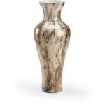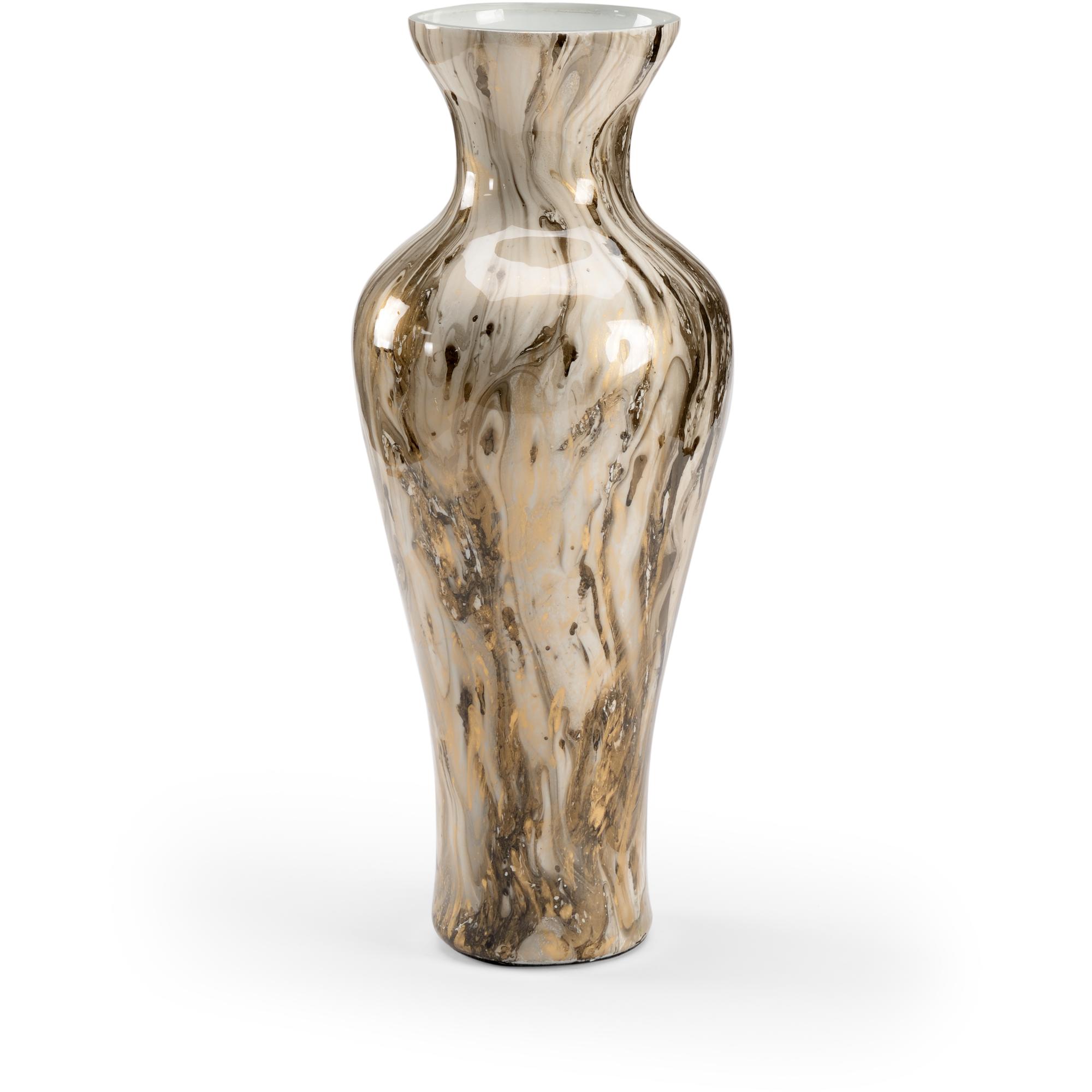 Be mesmerized by the swirls of the calacatta gold… Cream, gray and gold create a marbled pattern on this striking 20″ glass vase. The graceful curves of the vase along with the swirls of the calacatta gold add visual interest and a sense of calm to any environment. Add fresh flowers for a stunning centerpiece.