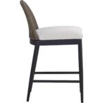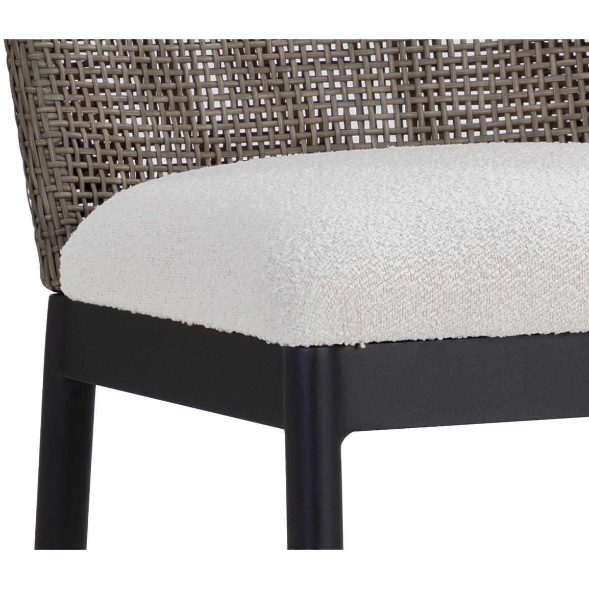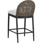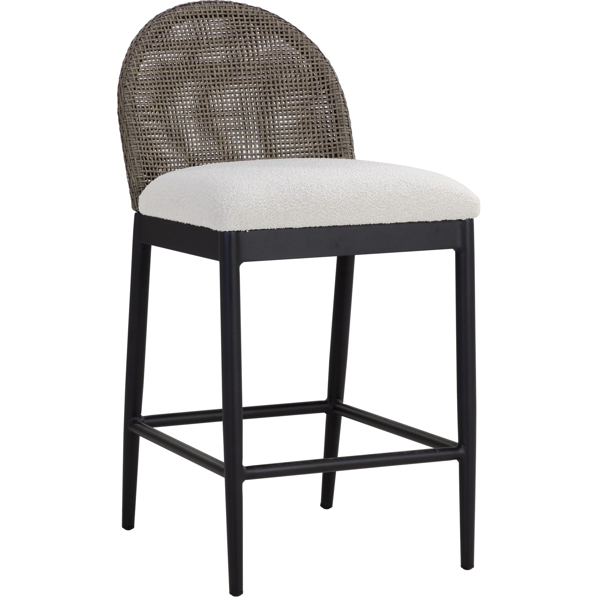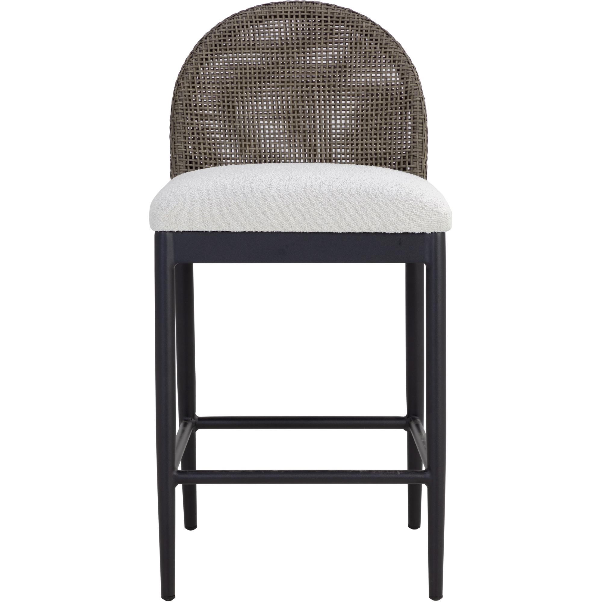 Appreciate the beauty of outdoor living with the Calandri Counter Stool. A softly curved back made with ore grey polyethylene cane wicker weave pairs beautifully with our soft louis cream outdoor boucle performance fabric, exuding both comfort and style.