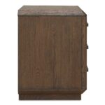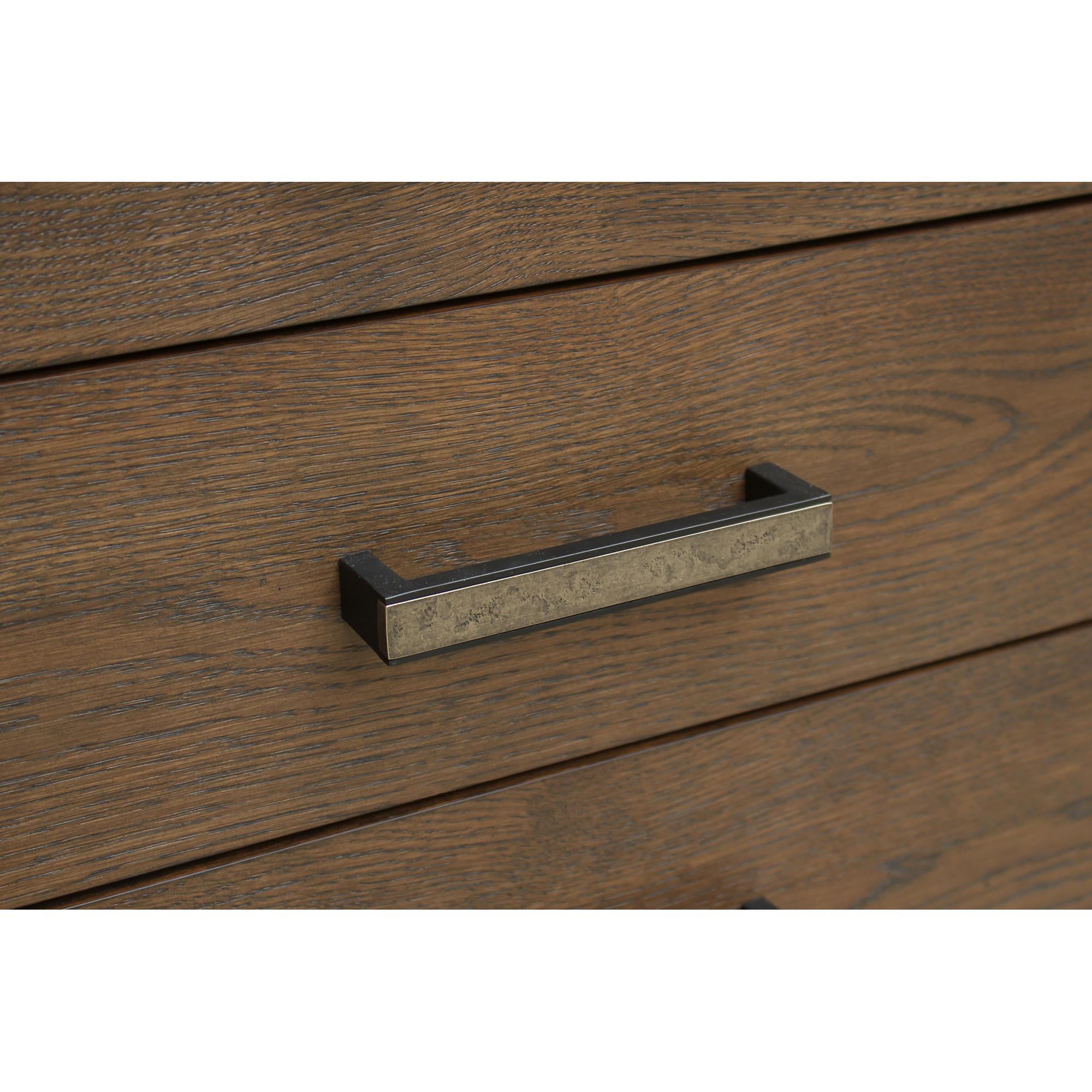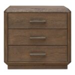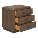 Crafted from solid oak with a distressed brown finish, the Caleb nightstand harmonizes strength with weathered sophistication. Clean lines and balanced proportions create a sense of tranquility, while the subtle rustic air complements various interior styles. Three spacious drawers offer ample storage, a testament to well-considered, well-crafted design.