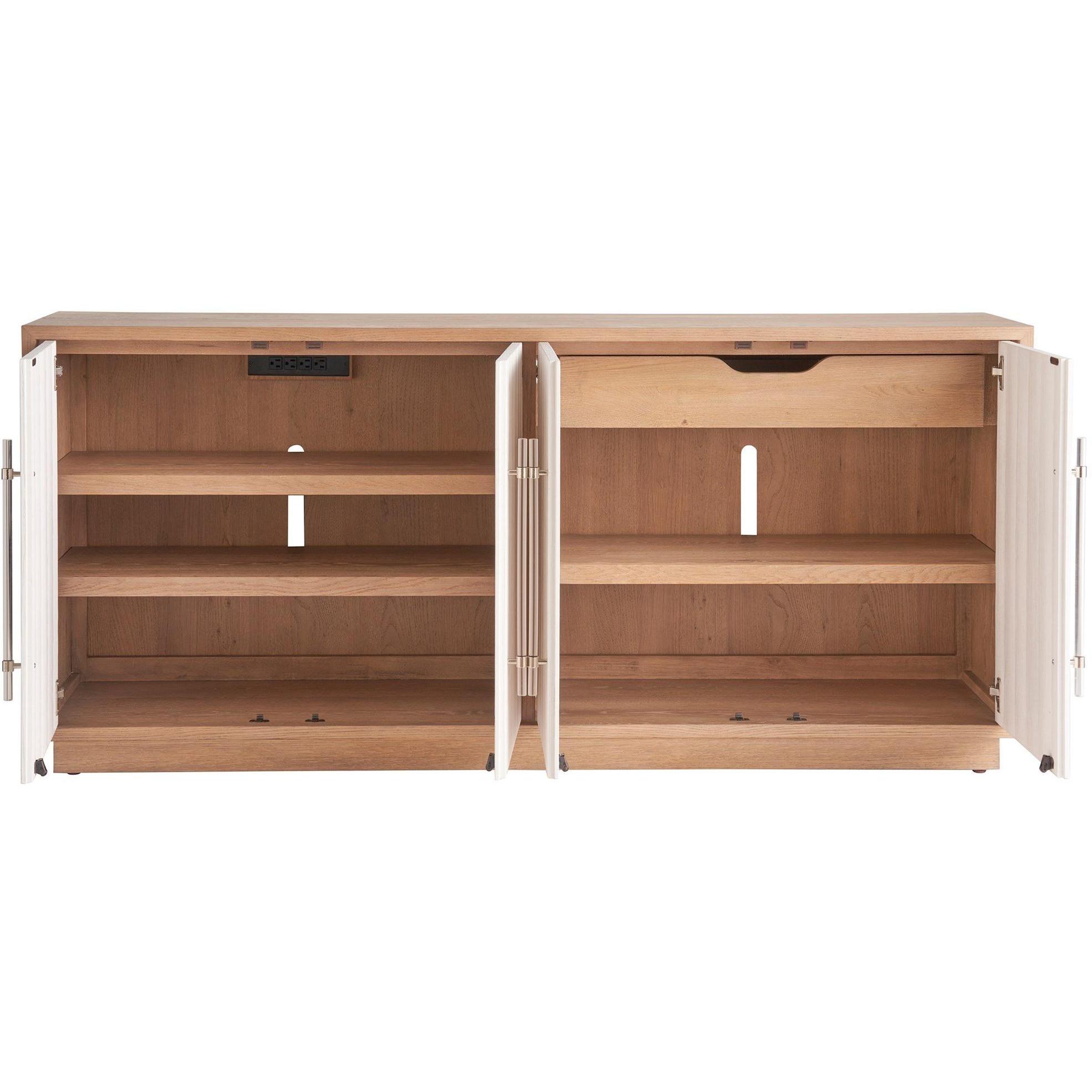A beautiful blending of texture and hue, the Camden Credenza offers a seamless elegance with abundant storage space, a two-tone finish and dreamy acrylic handles.