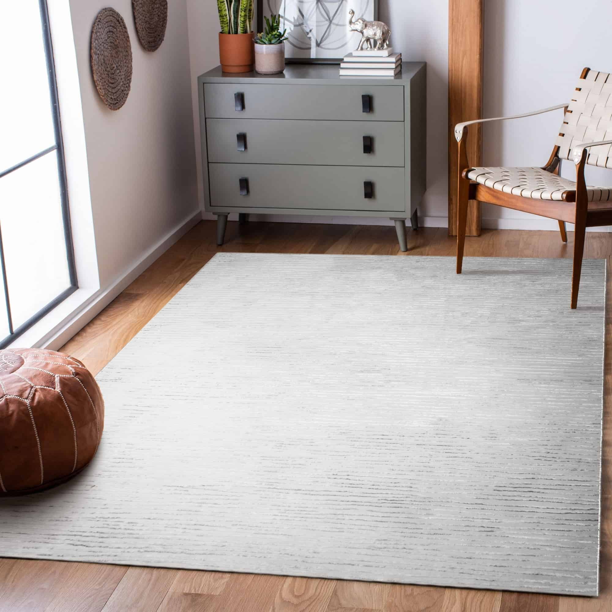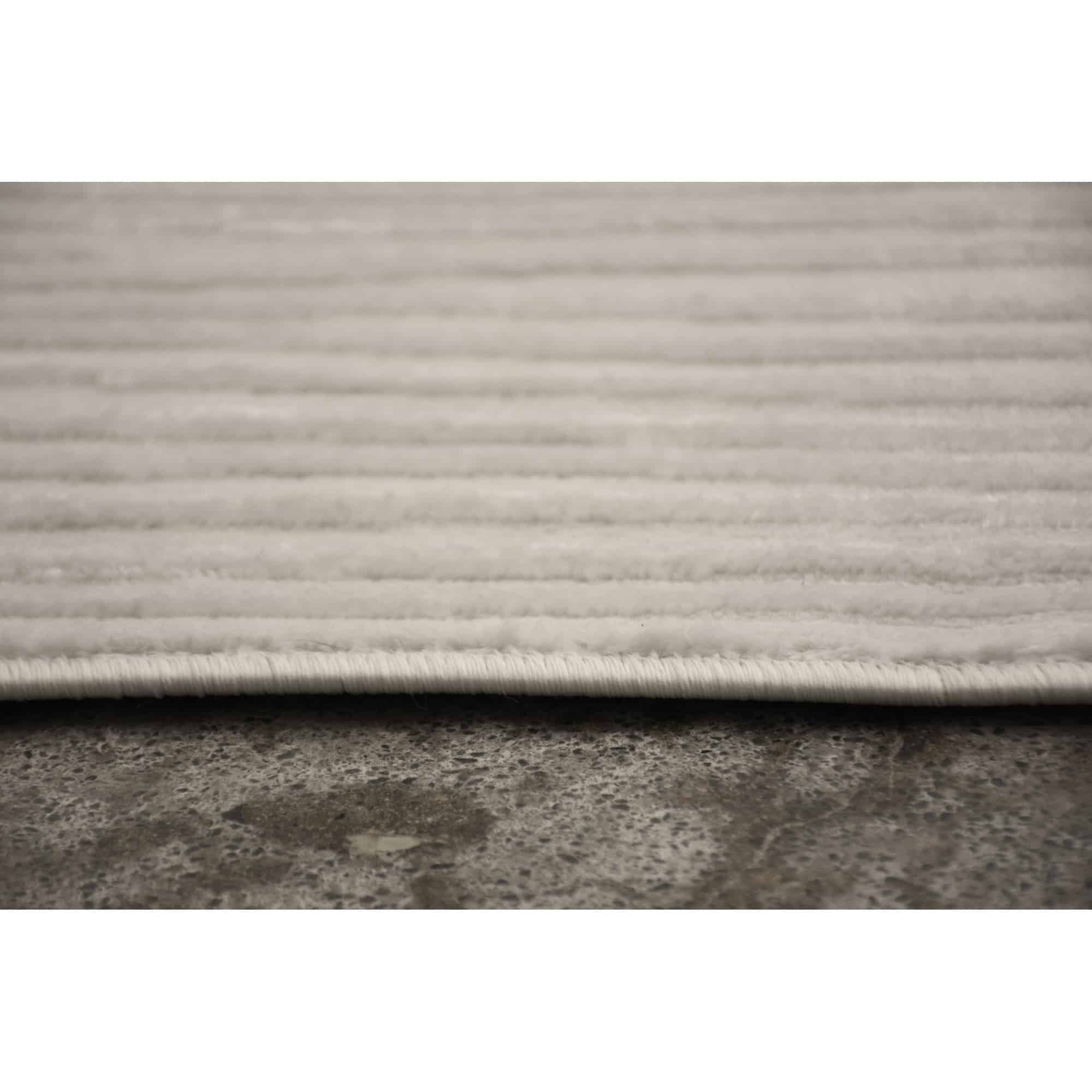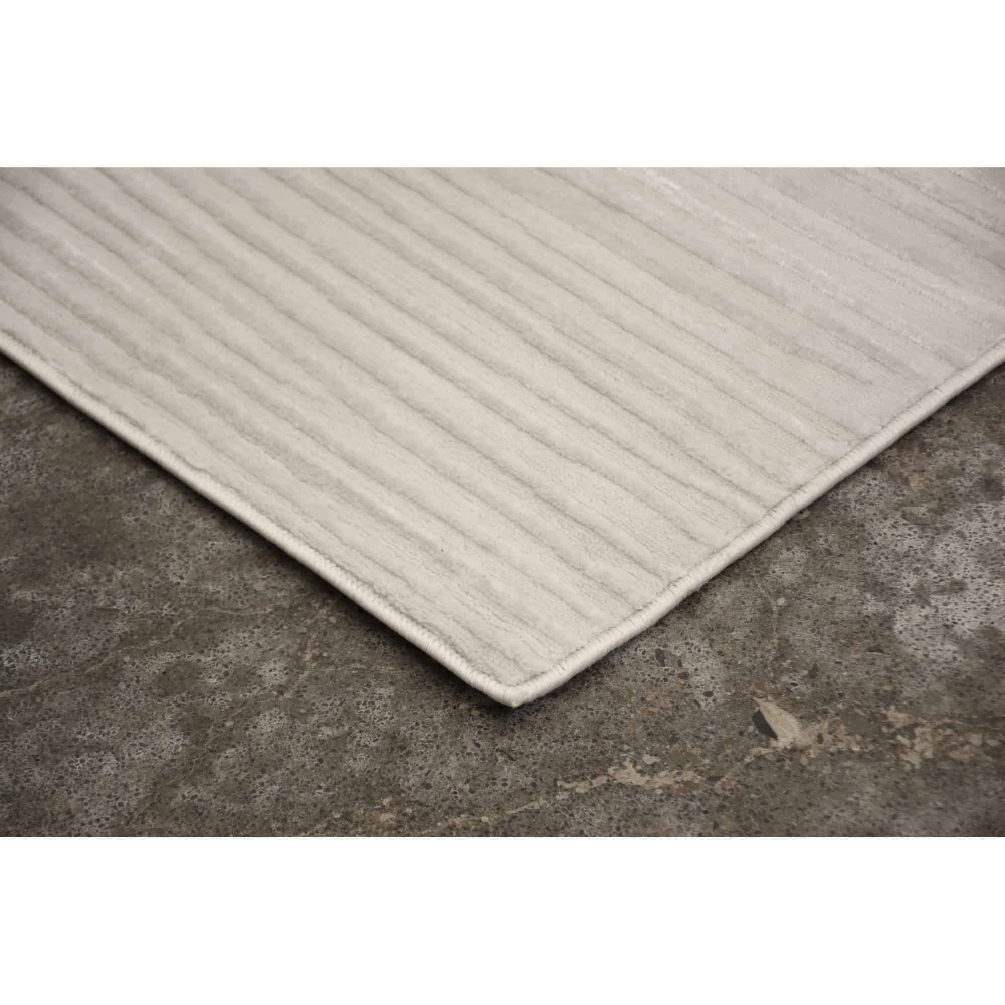 This understated rug design is made to complement its surroundings. Available in a variety of dimensions, it elevates extravagant furniture pieces and decor items within its midst, allowing them to become focal points. The subtle striped patterns and soft off-white hue promote an effortless comforting energy that one seeks in the home.