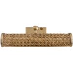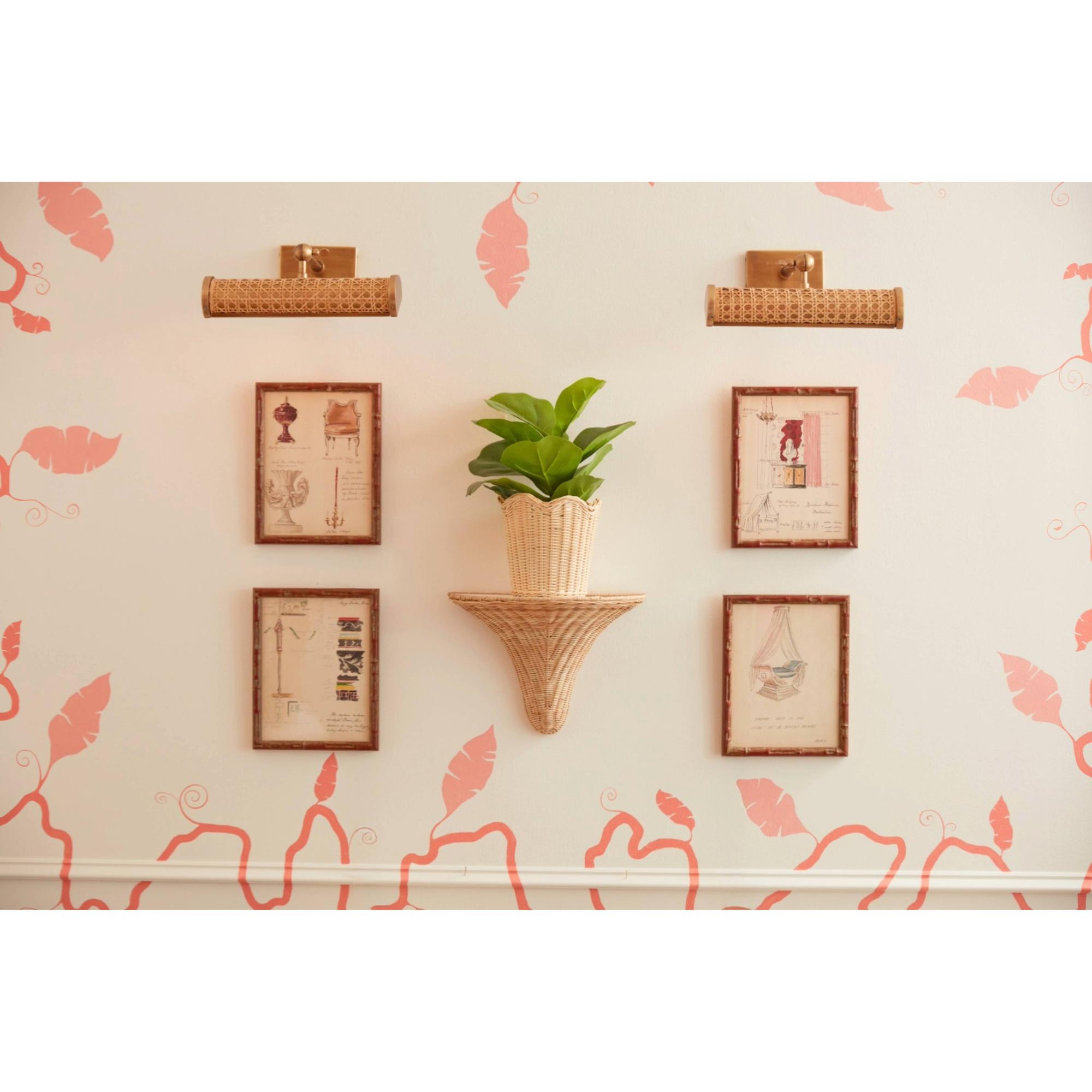 We love a good picture light, especially for large important pieces. Not only does it illuminate your favorite wall art, but also provides soft ambient light. Amanda decided ours needed a little island texture to be picture perfect. Natural handwoven cane over solid antique brass does the trick beautifully. Shade tilts so you can direct light at the perfect viewing angle.