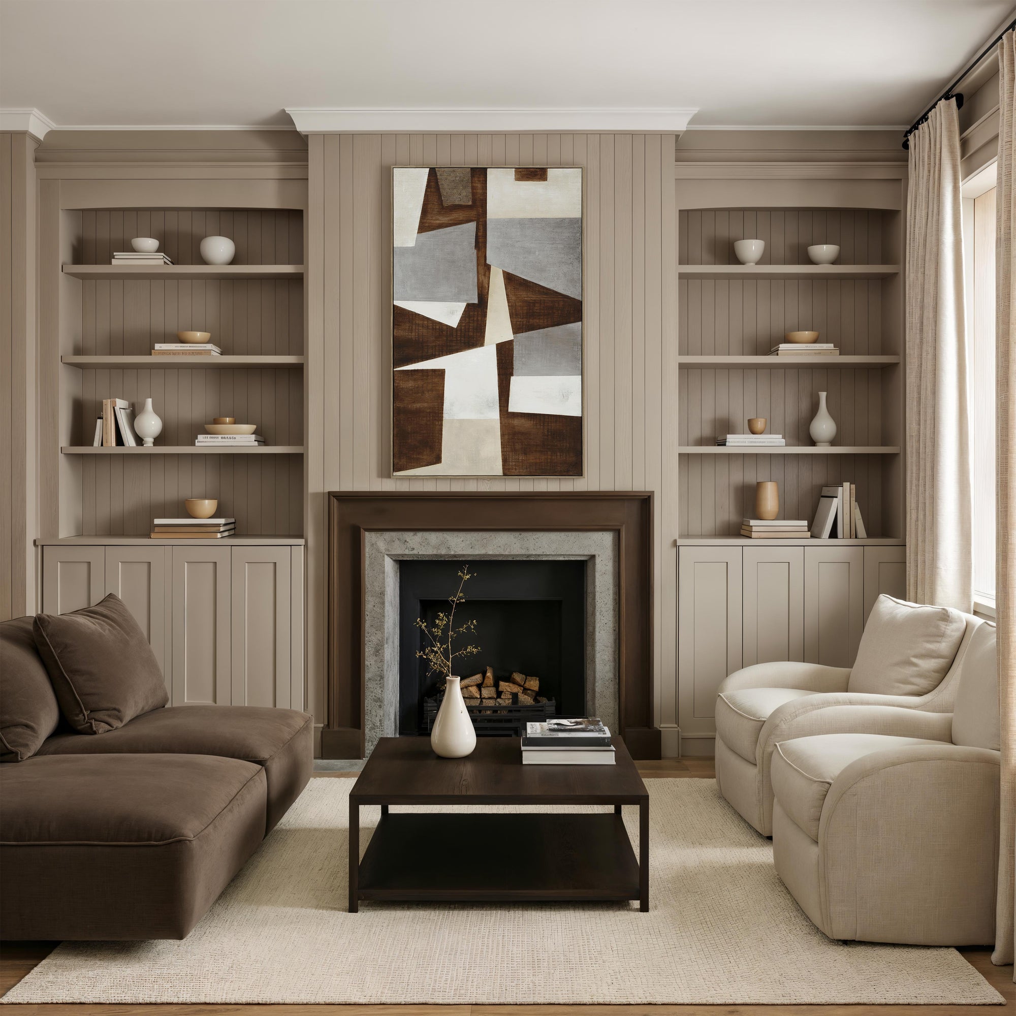 Infuse any space with organic texture and modern warmth with the Canella canvas wall art. Hand-painted on cotton using comb tools and gel, its calming browns and beiges create a dynamic, free-flowing vibe. Framed in medium walnut, it blends natural warmth with geometric structure to make an effortless statement in any contemporary room.