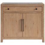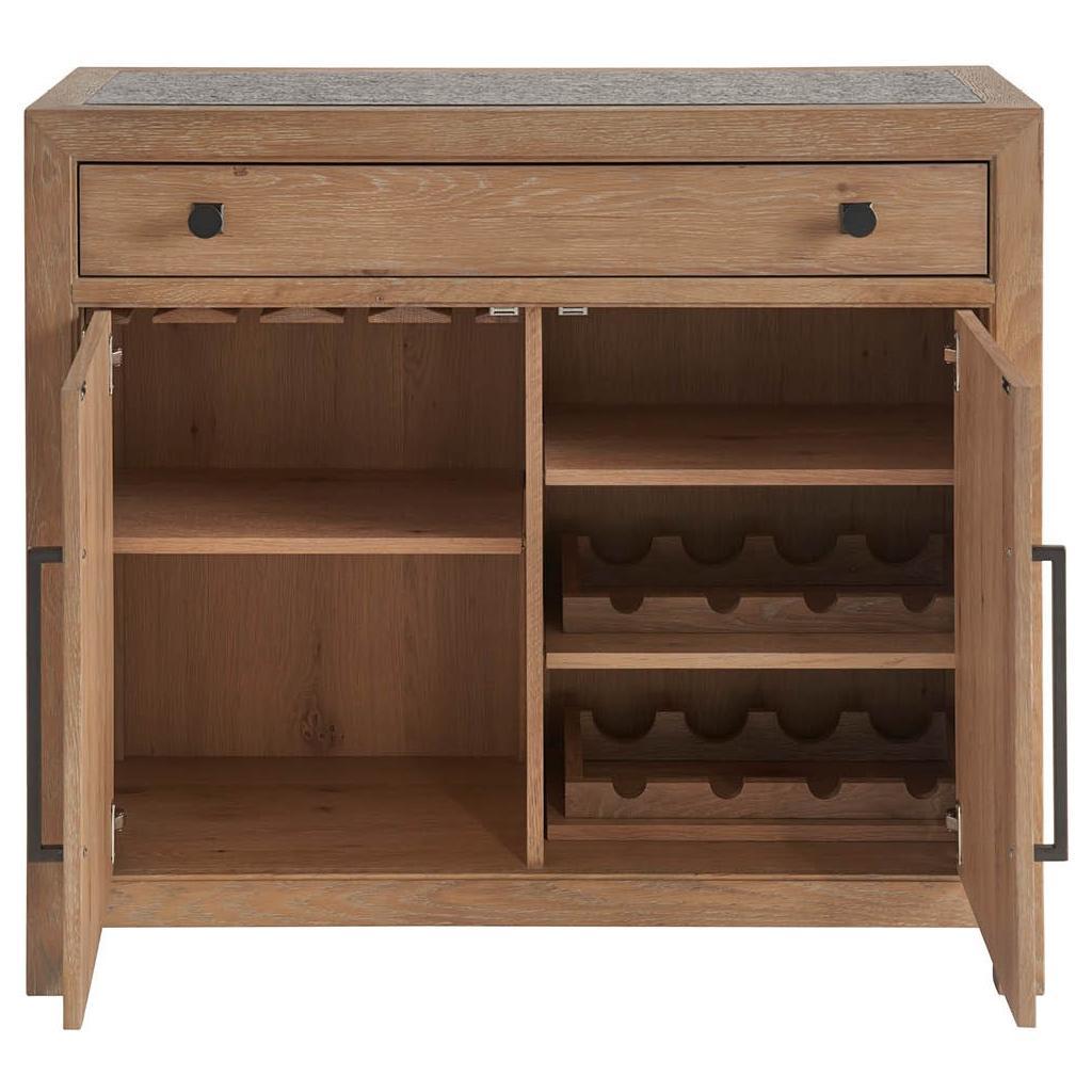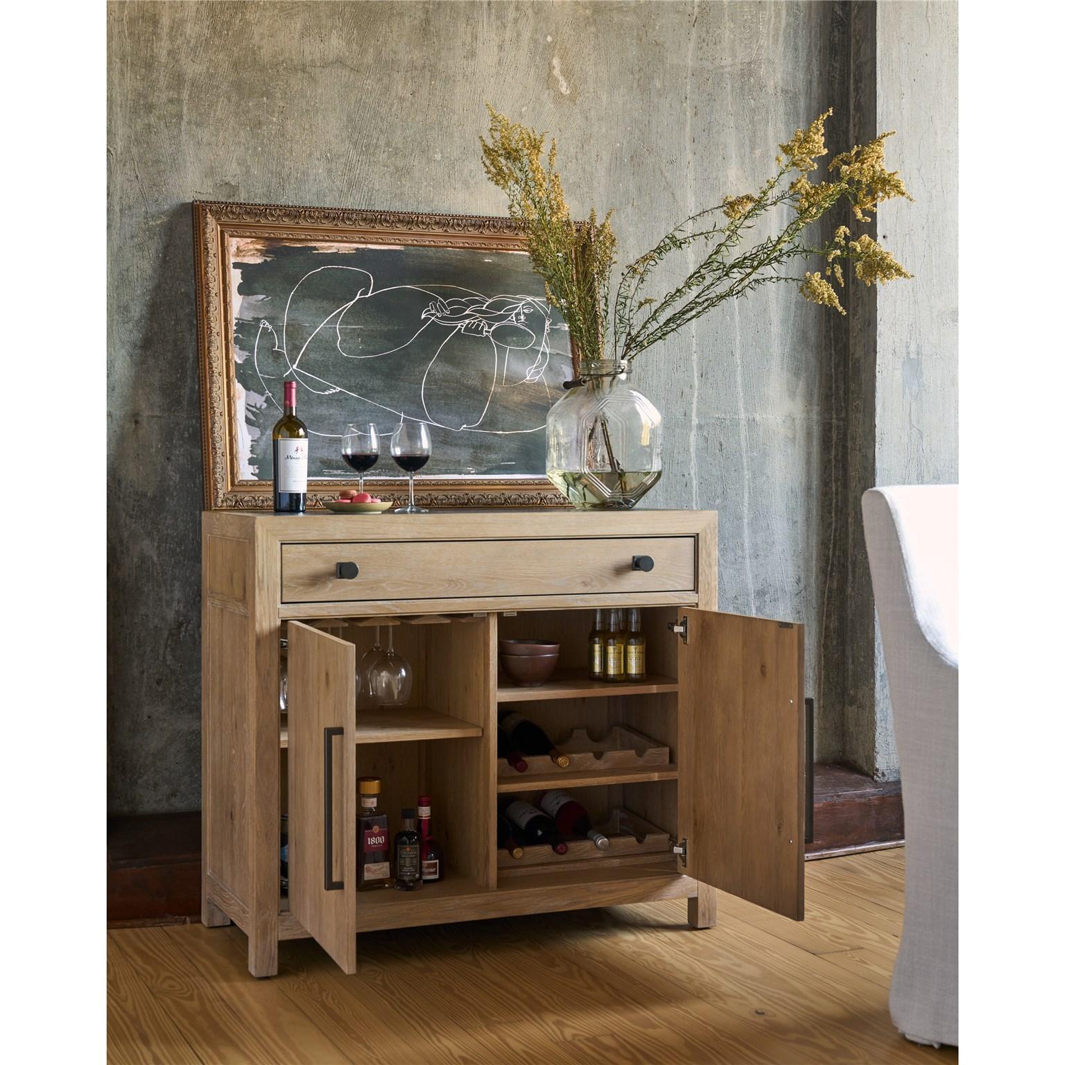 The Canyon Bar Cabinet is a sophisticated and functional addition to any home. Its versatile design, featuring adjustable shelving, wine storage, and a unique leather-textured stone top, makes it the perfect piece for entertaining guests. The medium hue finish and metal hardware create a modern and stylish look that complements any interior decor.