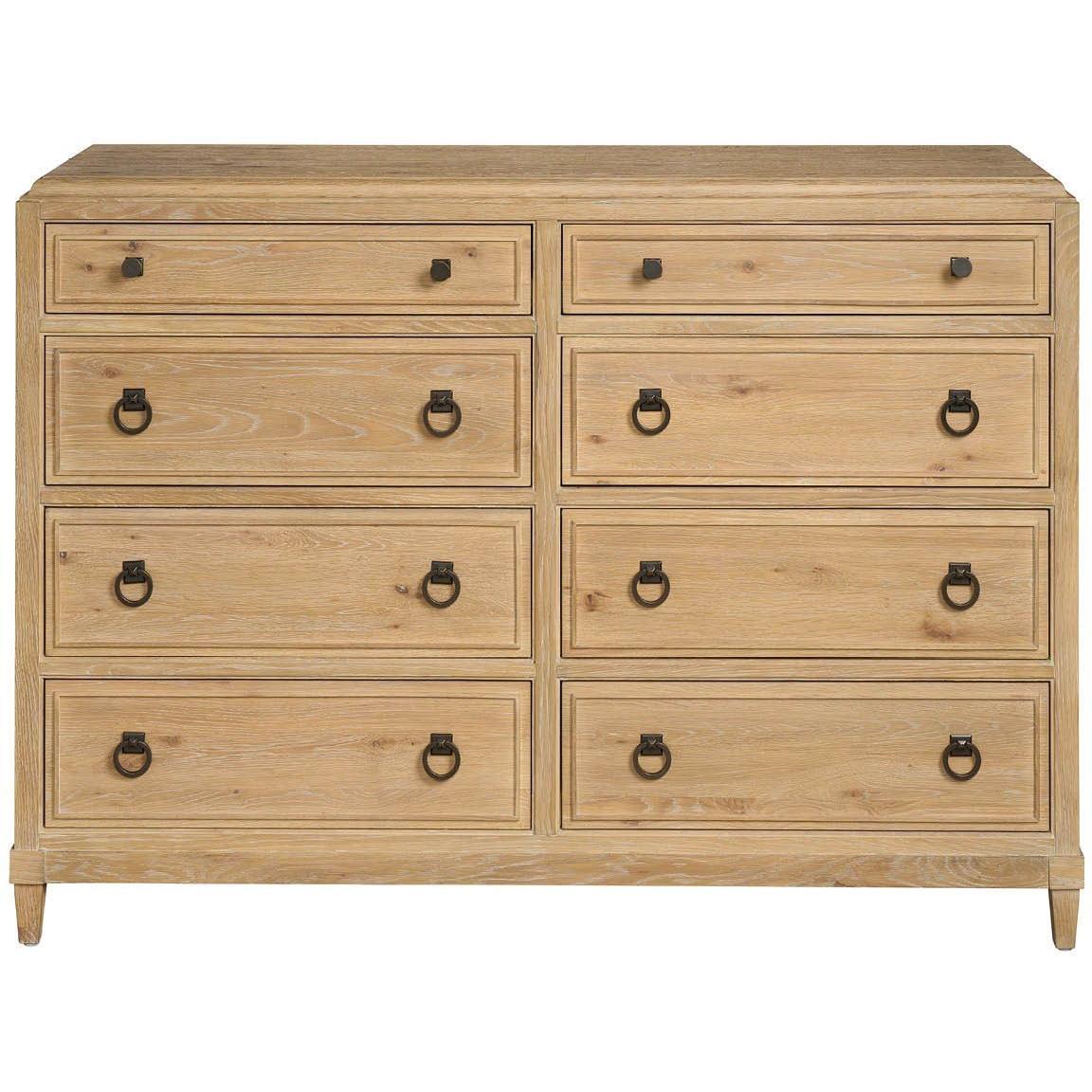 The Canyon Chest offers ample storage and a touch of modern rusticity. Its medium-hued Canyon finish and metal ring pulls create a warm and inviting aesthetic. The six larger drawers provide generous storage space, while the two smaller drawers are perfect for finer accessories.