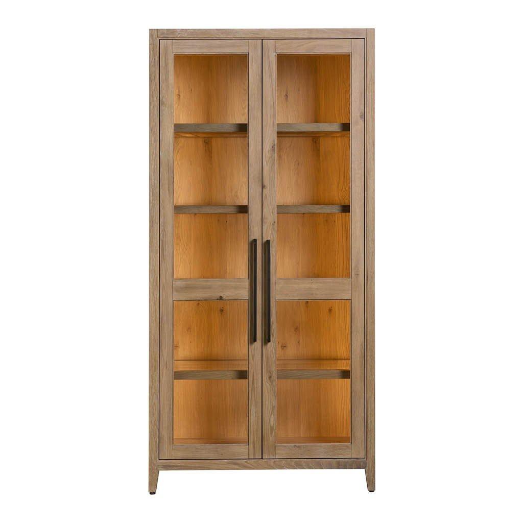 The Canyon Display Cabinet is a sophisticated and functional storage solution. Its adjustable glass shelves and sleek metal pulls create a modern aesthetic. The light wood finish with dark graining adds a touch of natural elegance, making it a captivating addition to any living room or dining room.
