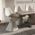Bringing design to the forefront with these statement-making dining chairs. Fully upholstered seat, back and base in a monochrome look that exudes elegance. The automatic return swivel seat adds another elevated element to the design of these gorgeous chairs and adds functionality to the piece. Perfect in a formal dining space, as a lounge chair, or to bring sophistication into your everyday dining.