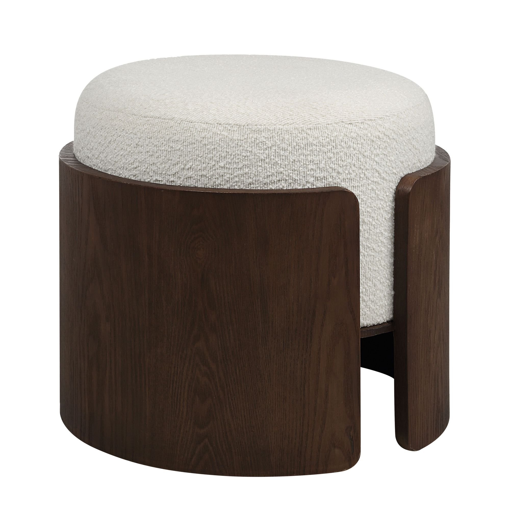 Canadian designer and television host, Steven Sabados brings us this modern ottoman, proving his style savvy once again. Perfect as a pouf, footrest, occasional seating or even as a sculptural element, it beautifully balances dark with light thanks to high-quality walnut veneer and off-white boucle upholstery. Embrace the trend that’s sure to become a must-have with true staying power.