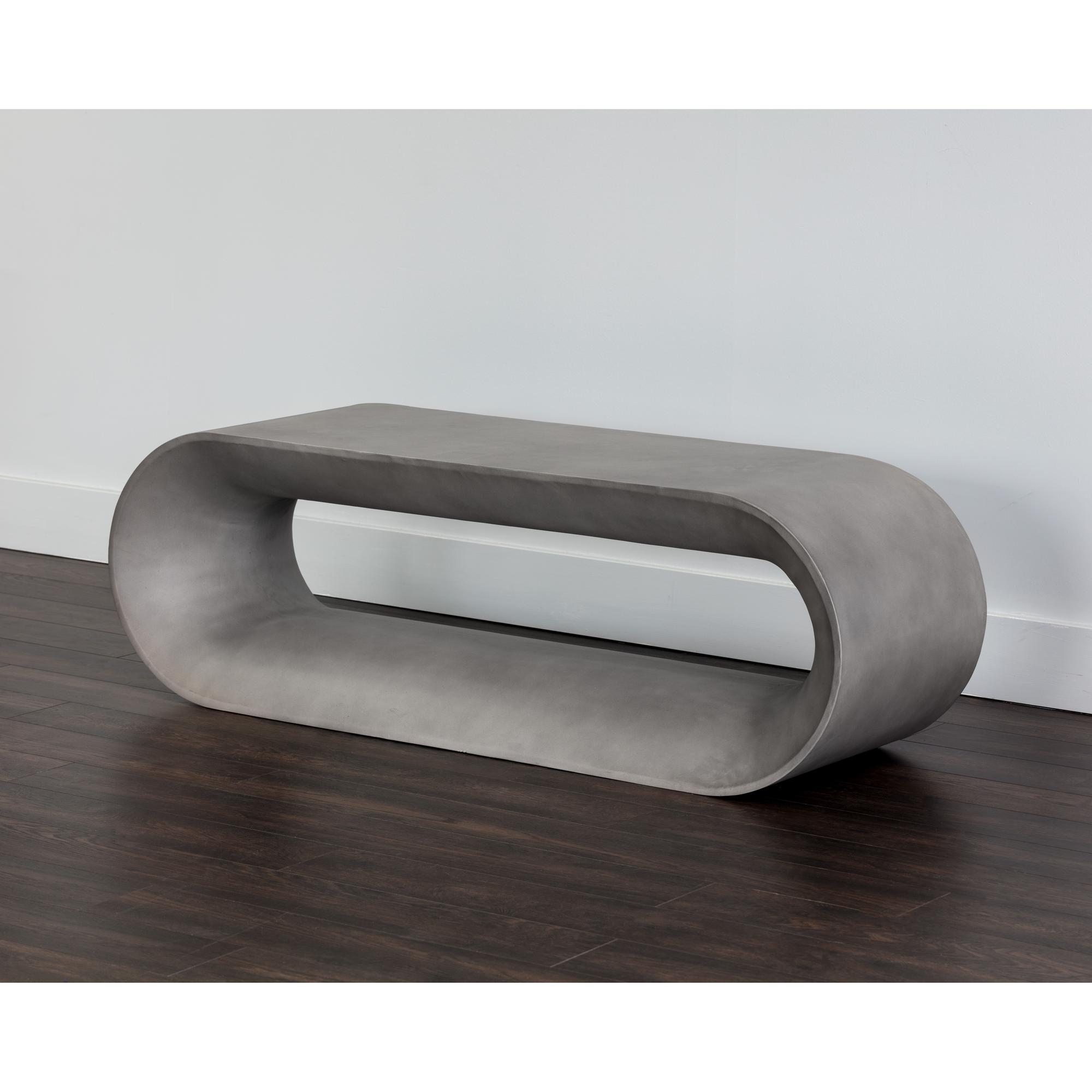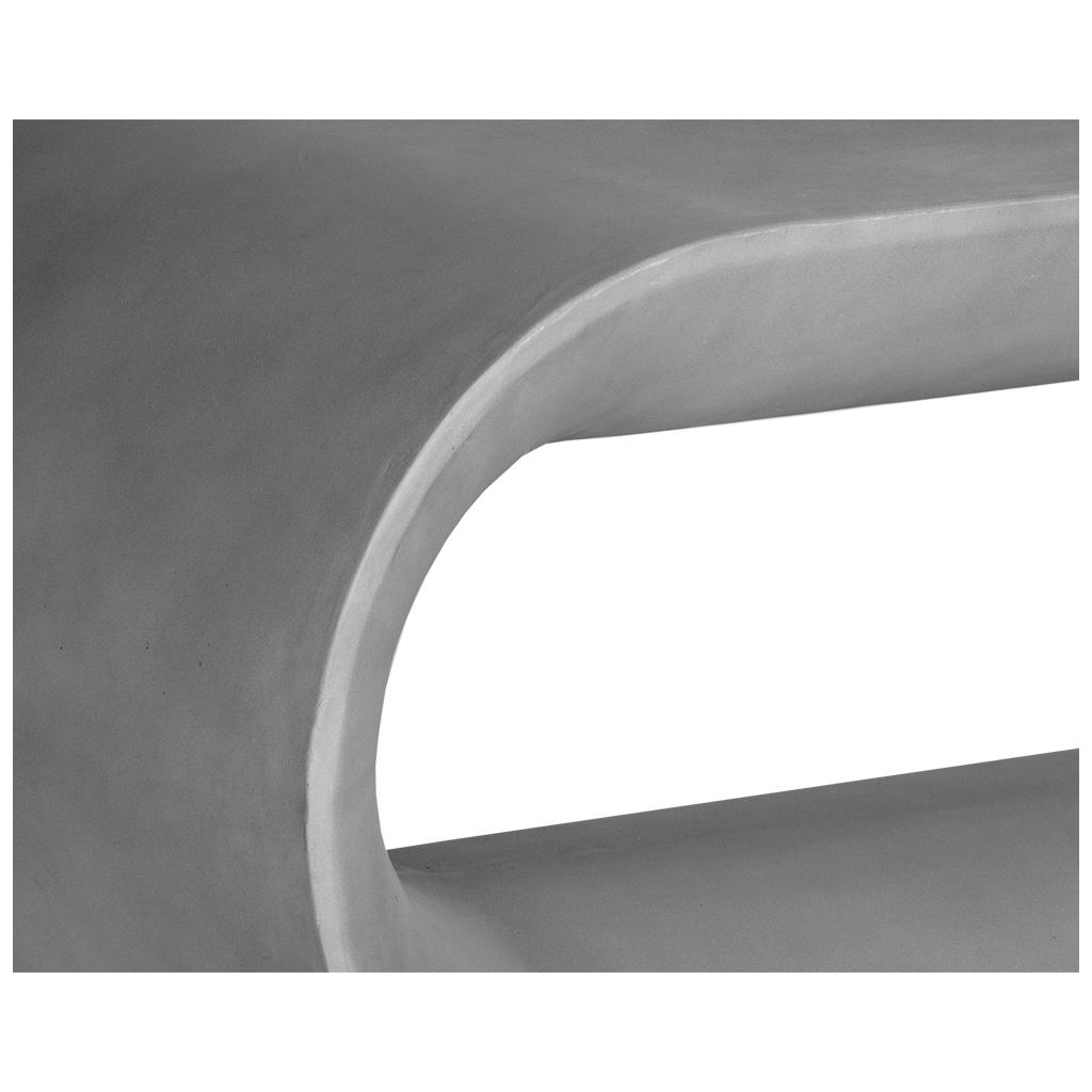 This contemporary concrete bench combines unique form and function. Features a spacious bench with an open frame that can be used for storage. A versatile piece for