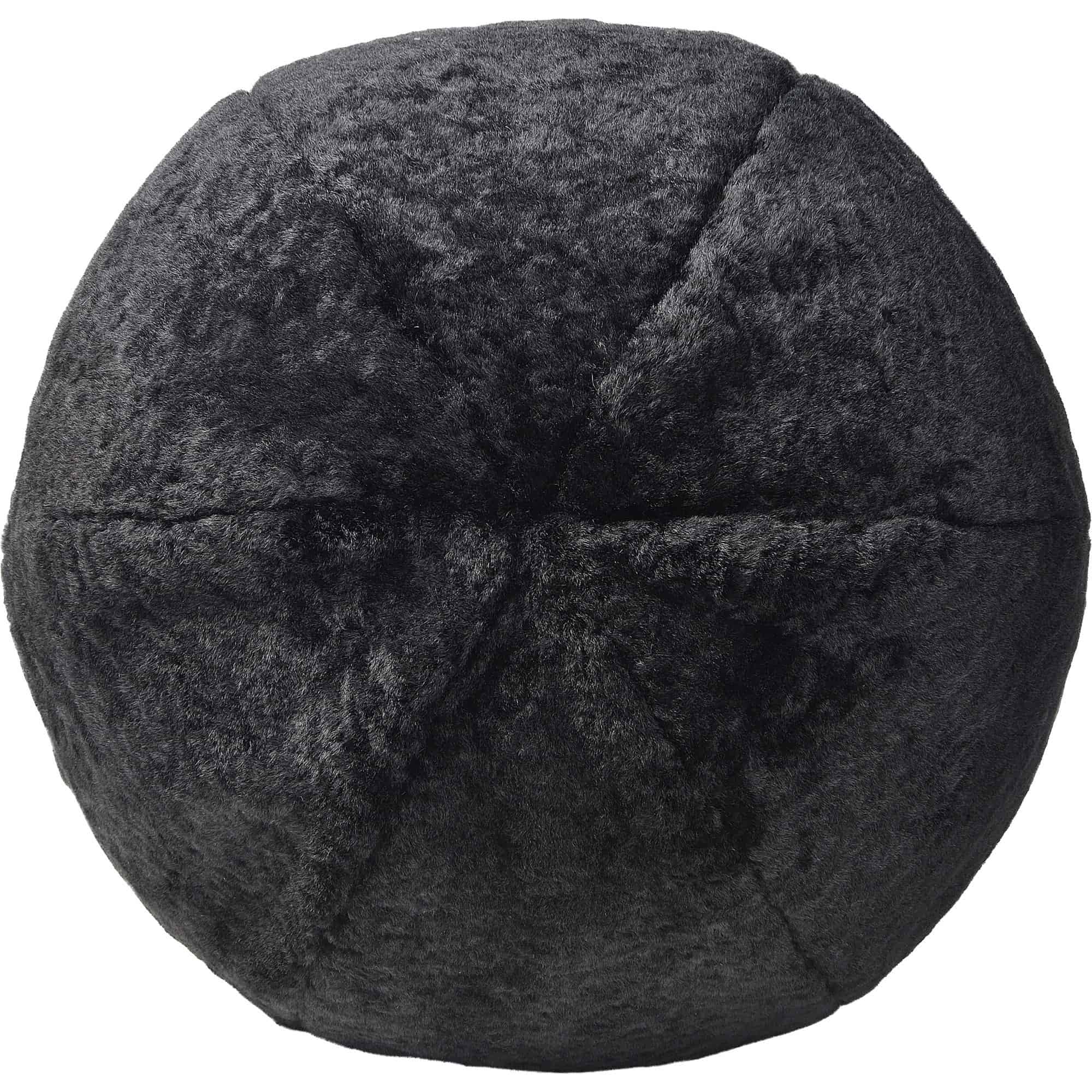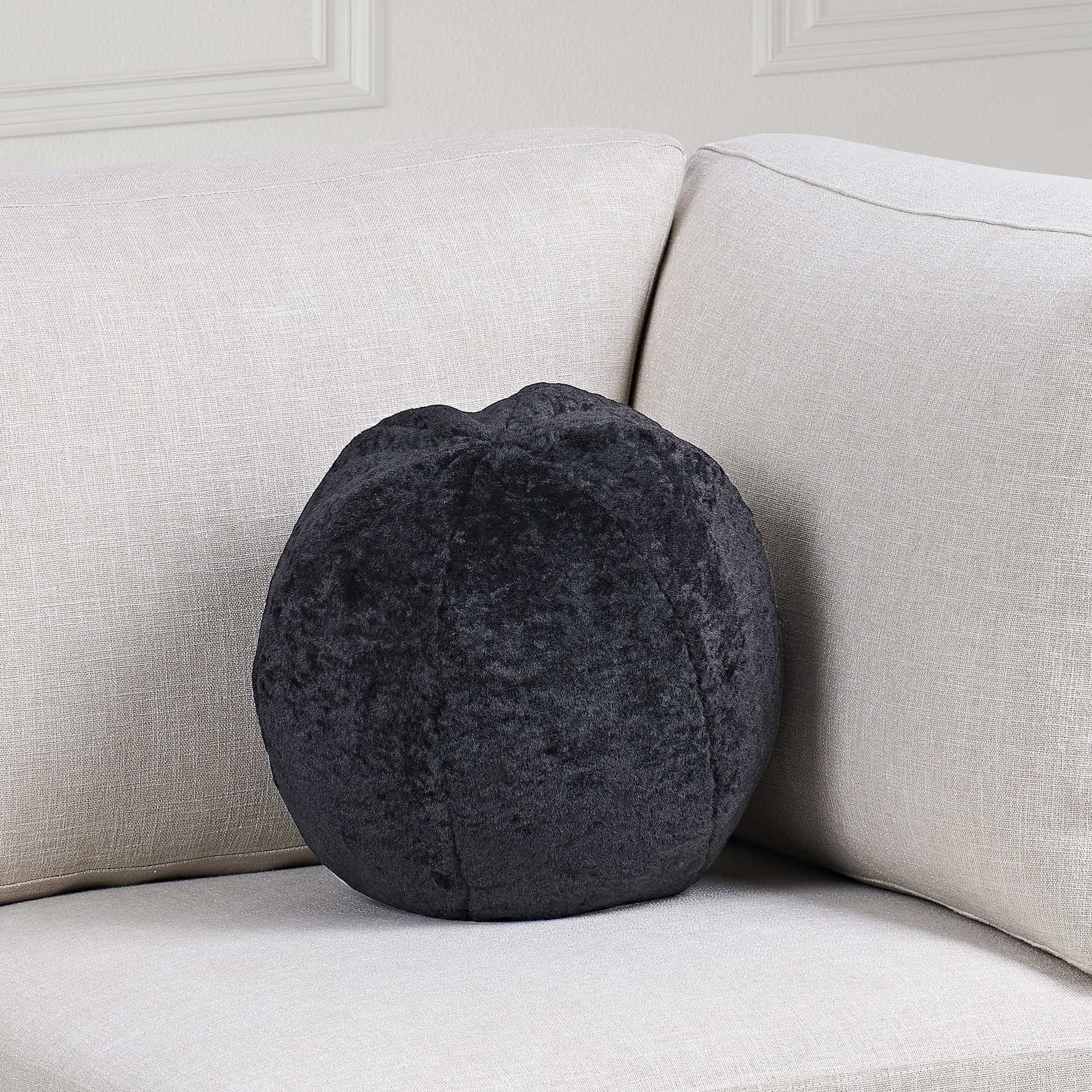 A sleek, dramatic take on the standard sphere pouf, this pillow is an optimal fit in the contemporary family room. At 12 by 12 inches with a shearling exterior, it adds new texture and dimension to the throw pillows and furnishings in its midst. With a black polyester finish and feather-down filling, it holds comfort inside and out.