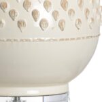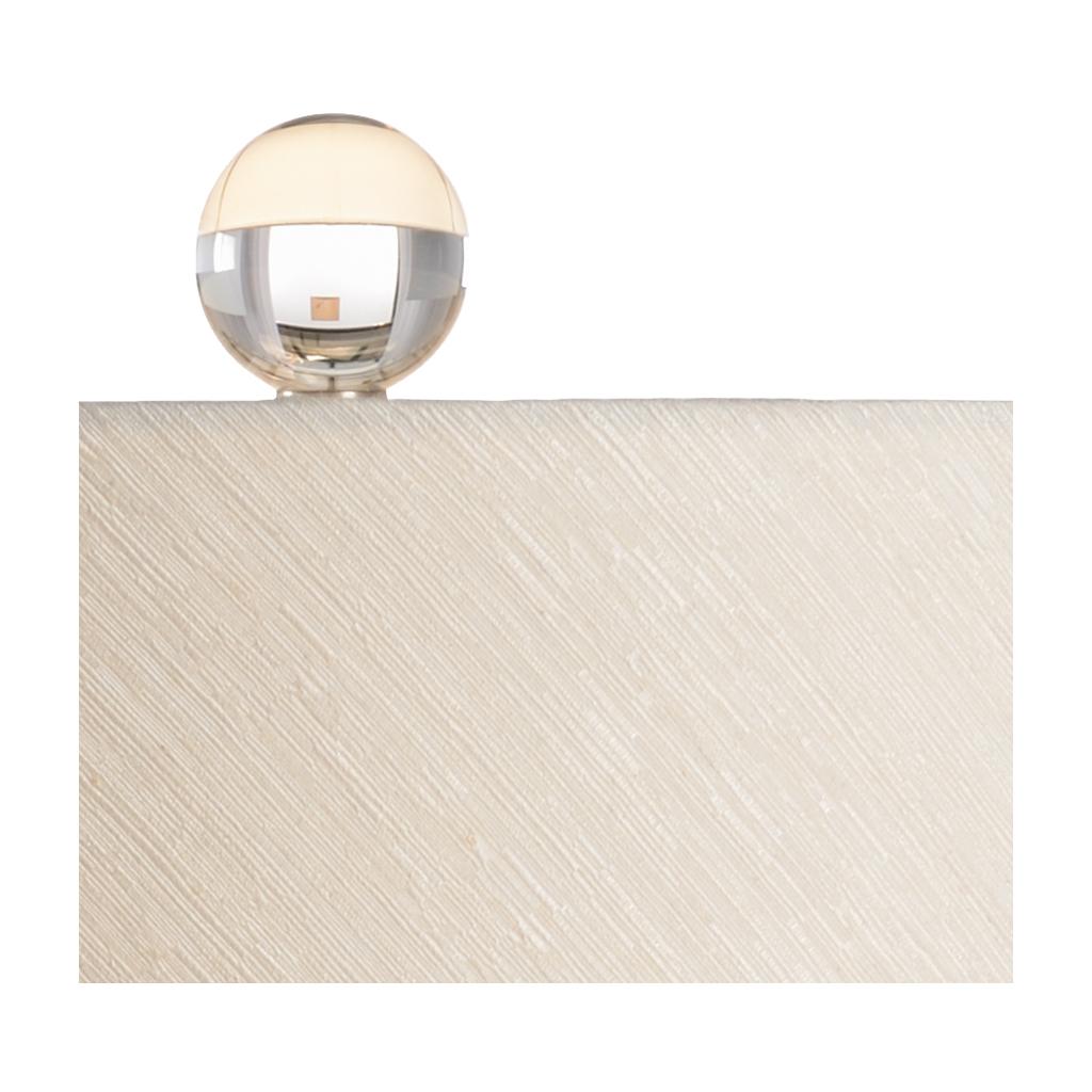 The cream glazed finish, gently curved body and hand textured pattern of the Italian ceramic create an appealing table lamp. The versatile lamp has a clear acrylic mounting and ball finial. A cream raw silk shade tops the light source and adds elegance to the contemporary accent worthy of any design style. Designed by Vietri.