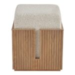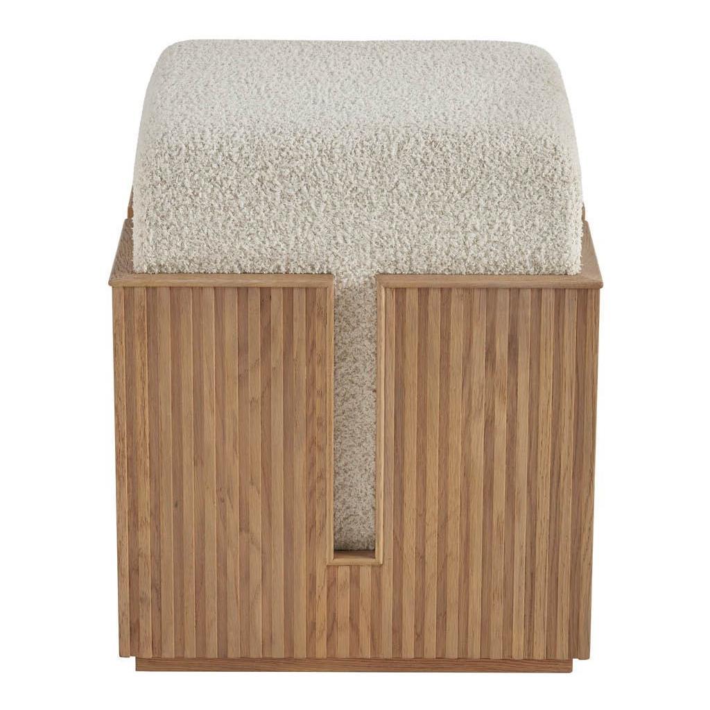 The Carmen Bunching Stool, a harmonious blend of form and function, is a versatile addition to any space. Its tambour-wrapped base, finished in a striking Skylark hue, adds a touch of modern elegance. The cozy, upholstered top, wrapped in Sheldon Ivory fabric, provides a comfortable seating option.