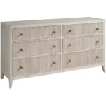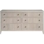 The Carmen Dresser, a timeless piece, offers ample storage with six spacious drawers. The top two drawers, lined with gray felt, provide a secure home for delicate jewelry. Its versatile White Oak finish seamlessly integrates into various interior styles, from classic to modern.