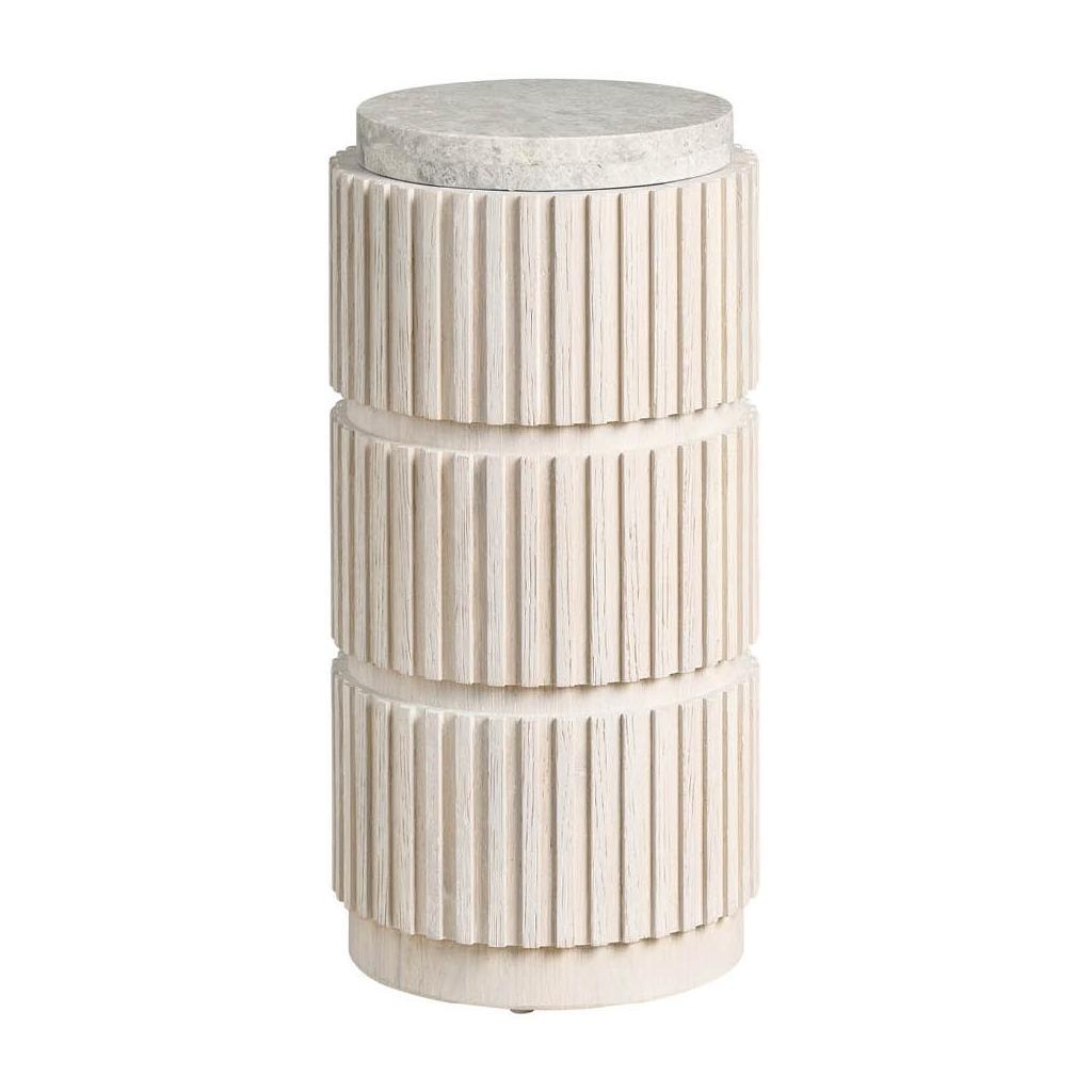 The Carmen Spot Table, a sleek and minimalist design, offers a unique blend of form and function. Its tall, slender silhouette, topped with a smooth stone surface, is perfect for holding a single drink or a small decorative object. The table’s distinctive vertical texture adds a touch of elegance, making it a versatile piece for any room.