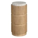 The Carmen Spot Table, a sleek and minimalist design, offers a unique blend of form and function. Its tall, slender silhouette, topped with a smooth stone surface, is perfect for holding a single drink or a small decorative object. The table’s distinctive vertical texture adds a touch of elegance, making it a versatile piece for any room.