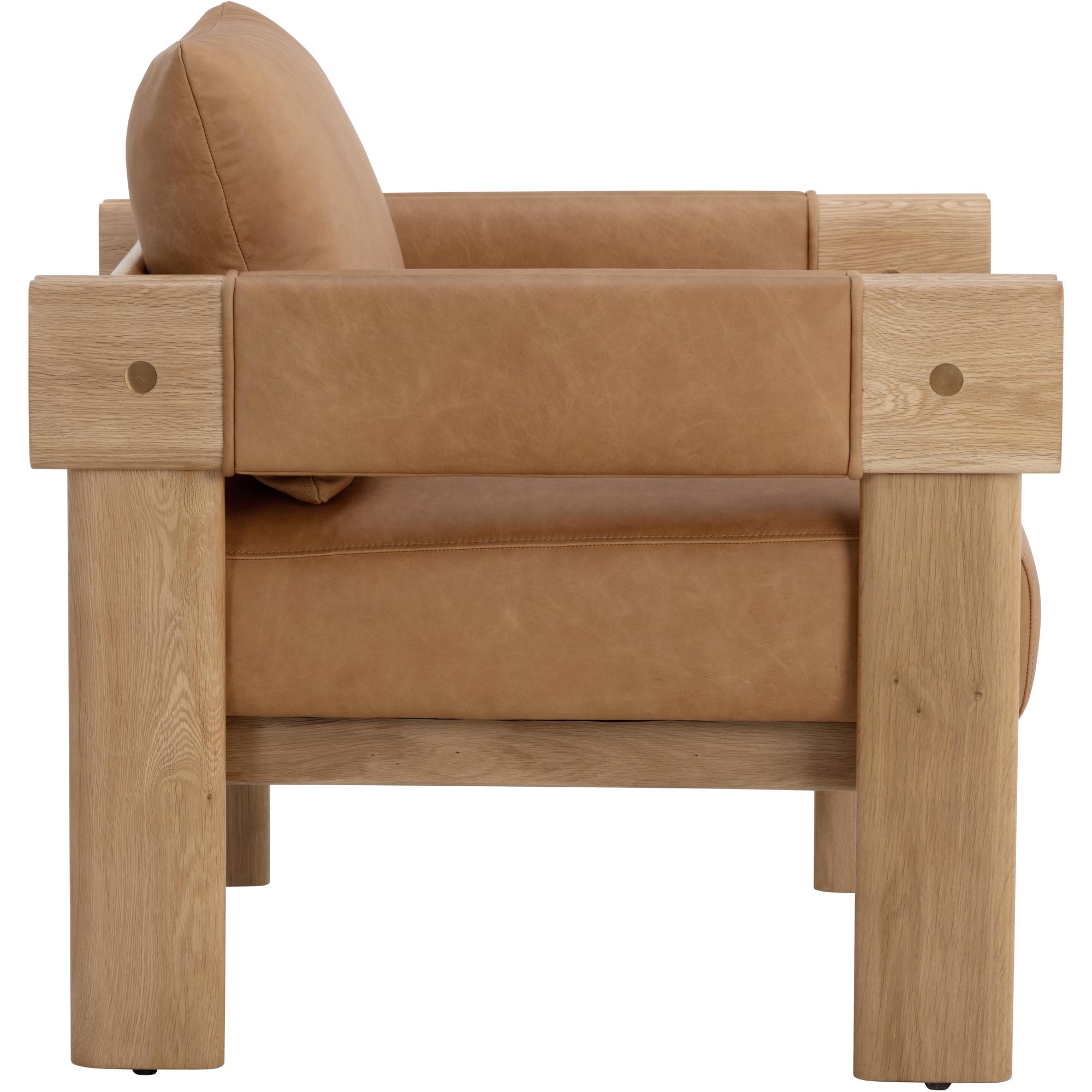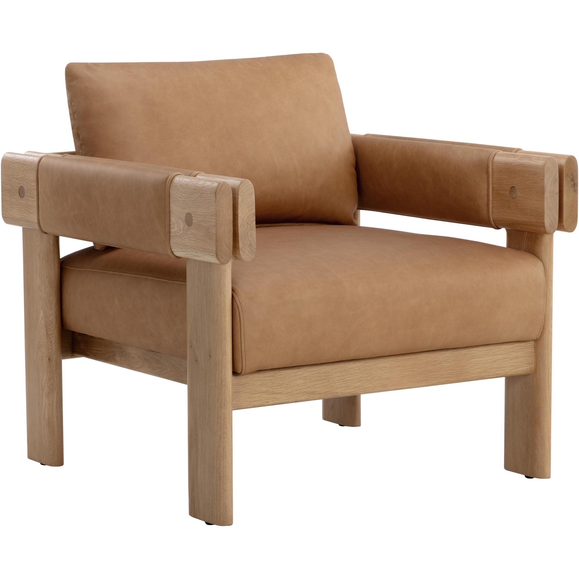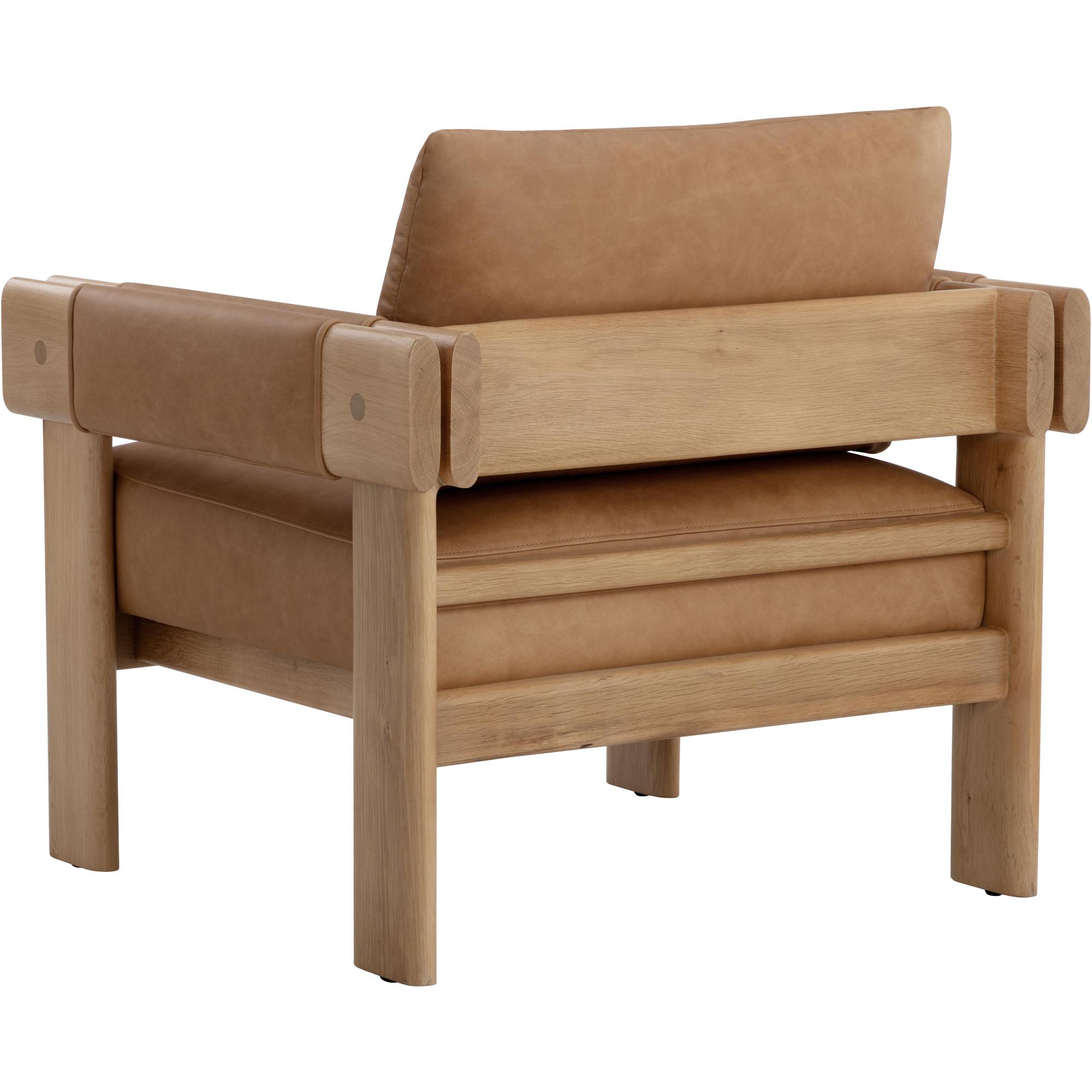 Crafted from natural materials, the Carmichael Lounge Chair adds an inviting atmosphere to any room. The beautiful characteristics of rustic oak wood and ludlow sesame leather are emphasized through the chair’s double armrest design. As wood is an organic, porous material, these pieces will contain natural variation of texture and may also exhibit fine indentations and cracks. Wood pieces will also display a disparity of colour and grain, and visible knots and burls that add to the character of each piece. Handle with Care: This design has been crafted with 100% leather. Leather is a natural material; as such, colour variations, markings, wrinkles, grooves and light scratches are acceptable and appreciated characteristics. No two pieces are alike. Visit our Product Care page for more information on how to ensure the lasting beauty of this piece.