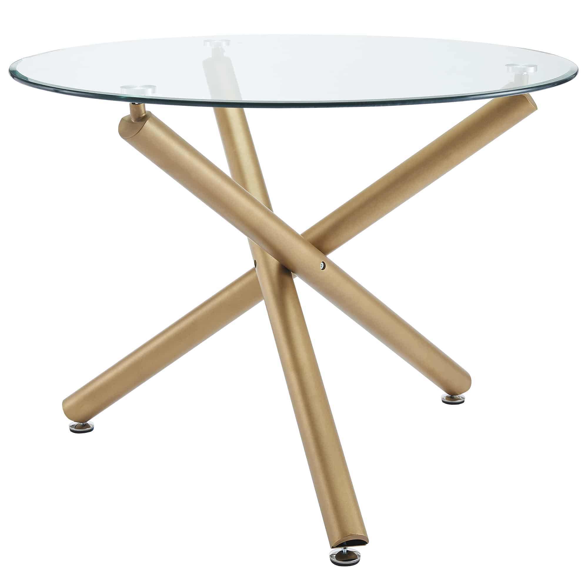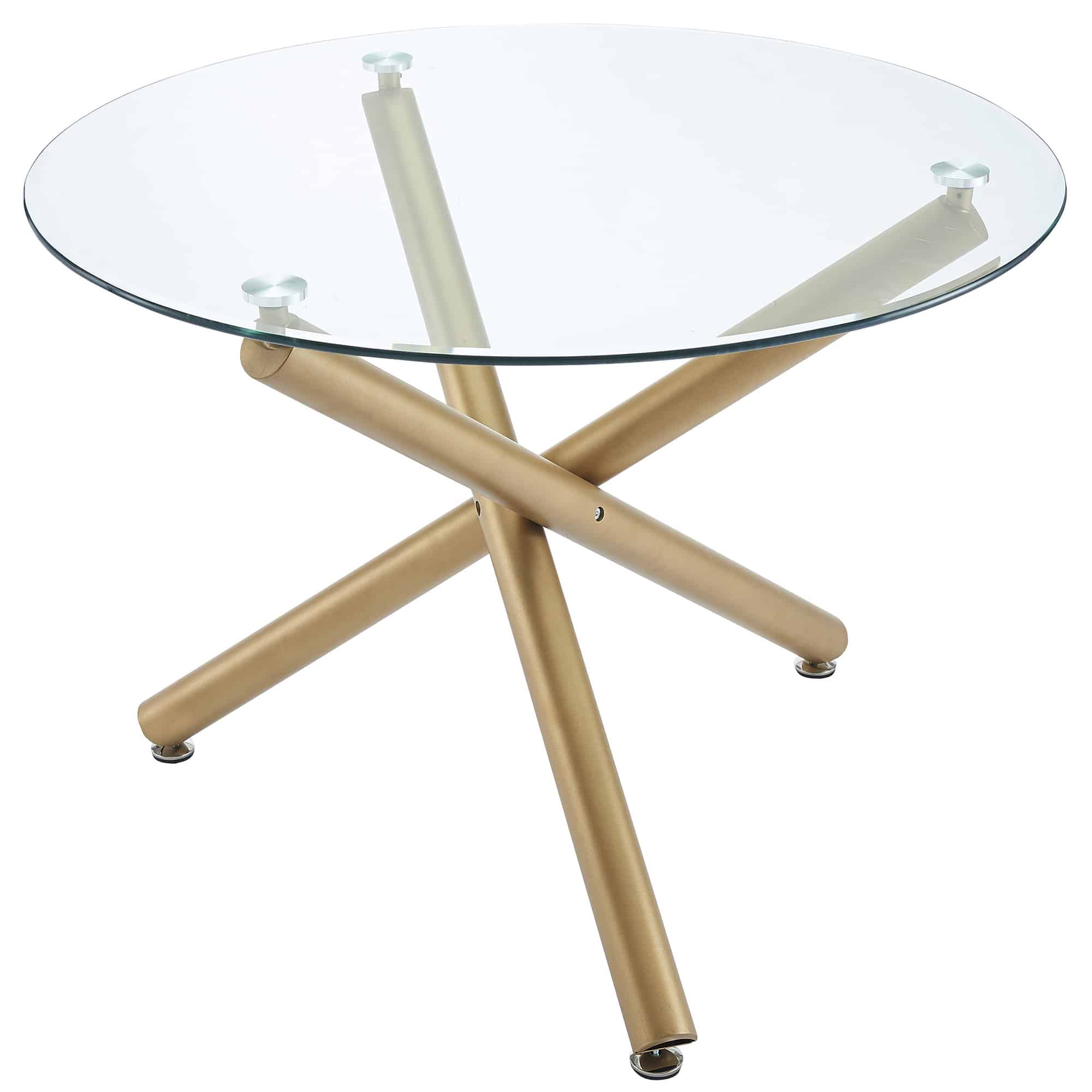 - 10mm clear, tempered glass top with brushed stainless steel accent