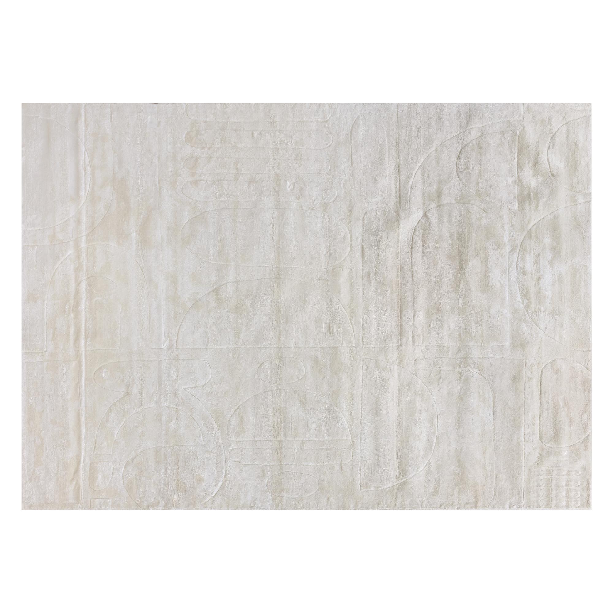 Crafted by local artisans, this hand-loomed rug has a rich texture with a velvety soft finish. Made with cream and ivory viscose with unique patterning featuring organic shapes. Available in four sizes. Variations in colour, design and size are to be expected and embraced in each rug due to the distinctive weaving process followed by each artisan, resulting in a truly one-of-a-kind piece.