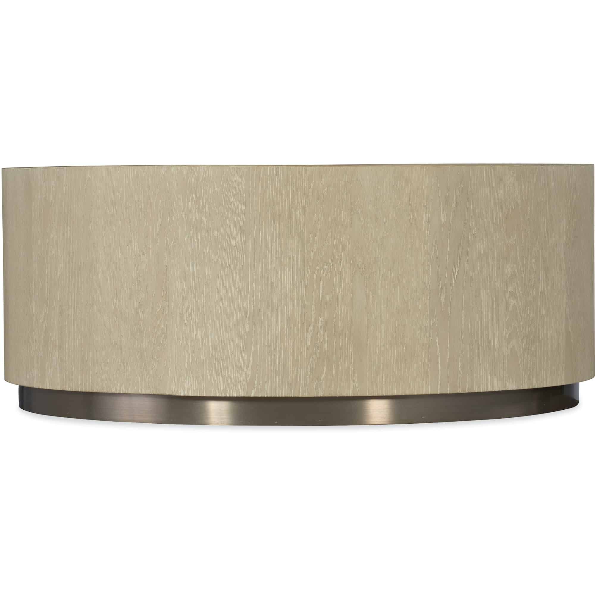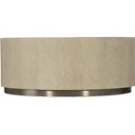 - Finish: Terrain: a soft, taupe finish on oak veneers. Distressing includes dry brushing. Champagne colored metal base.