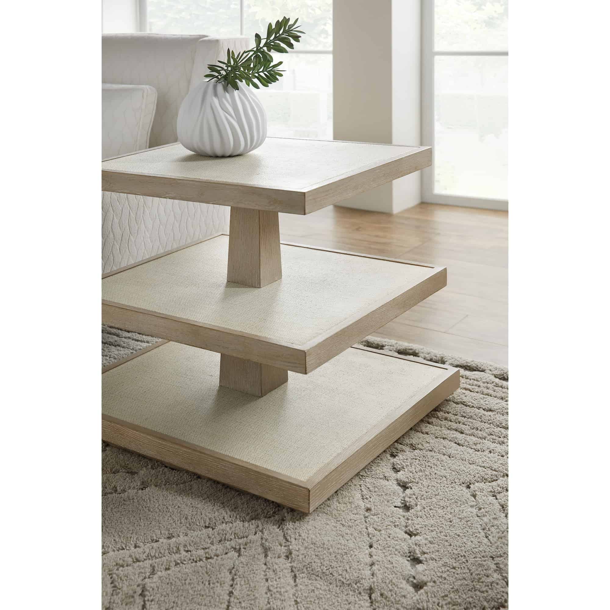 - Finish: Terrain: a soft, taupe finish on oak veneers. Distressing includes dry brushing. Pebble Beach: lacquered burlap finish.