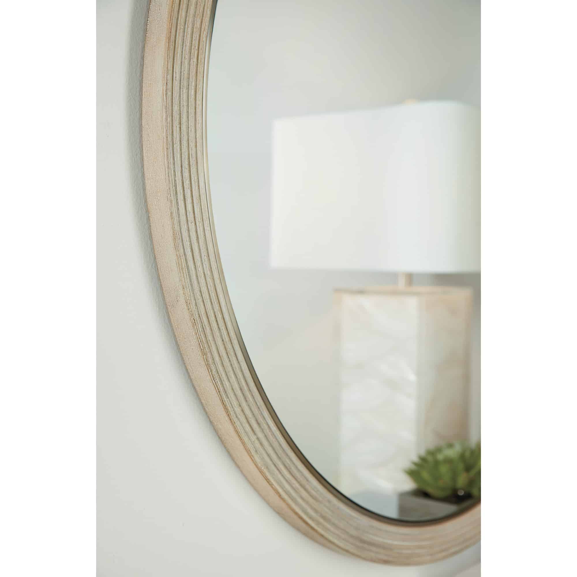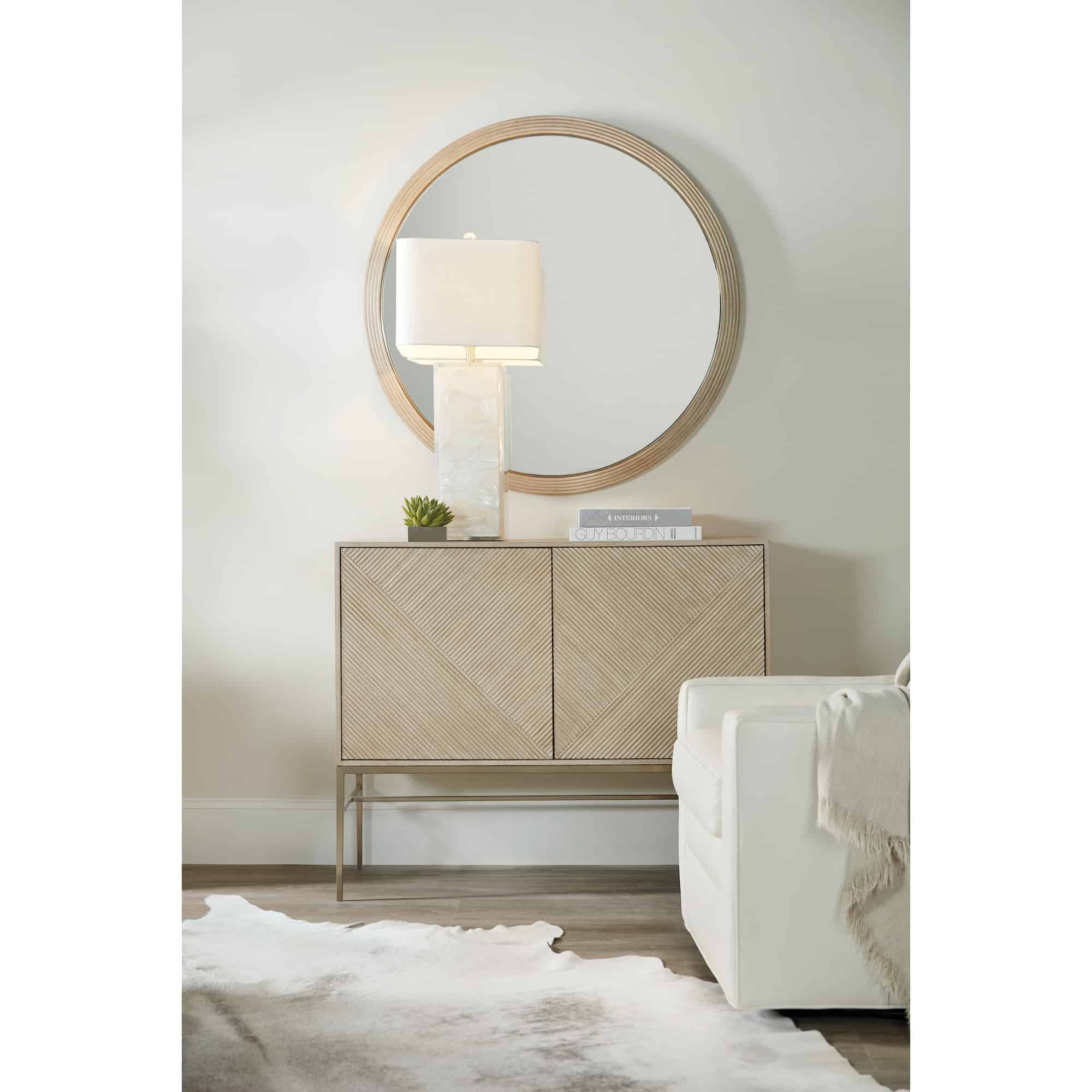 - Finish: Terrain: a soft, taupe finish on oak veneers. Distressing includes dry brushing.