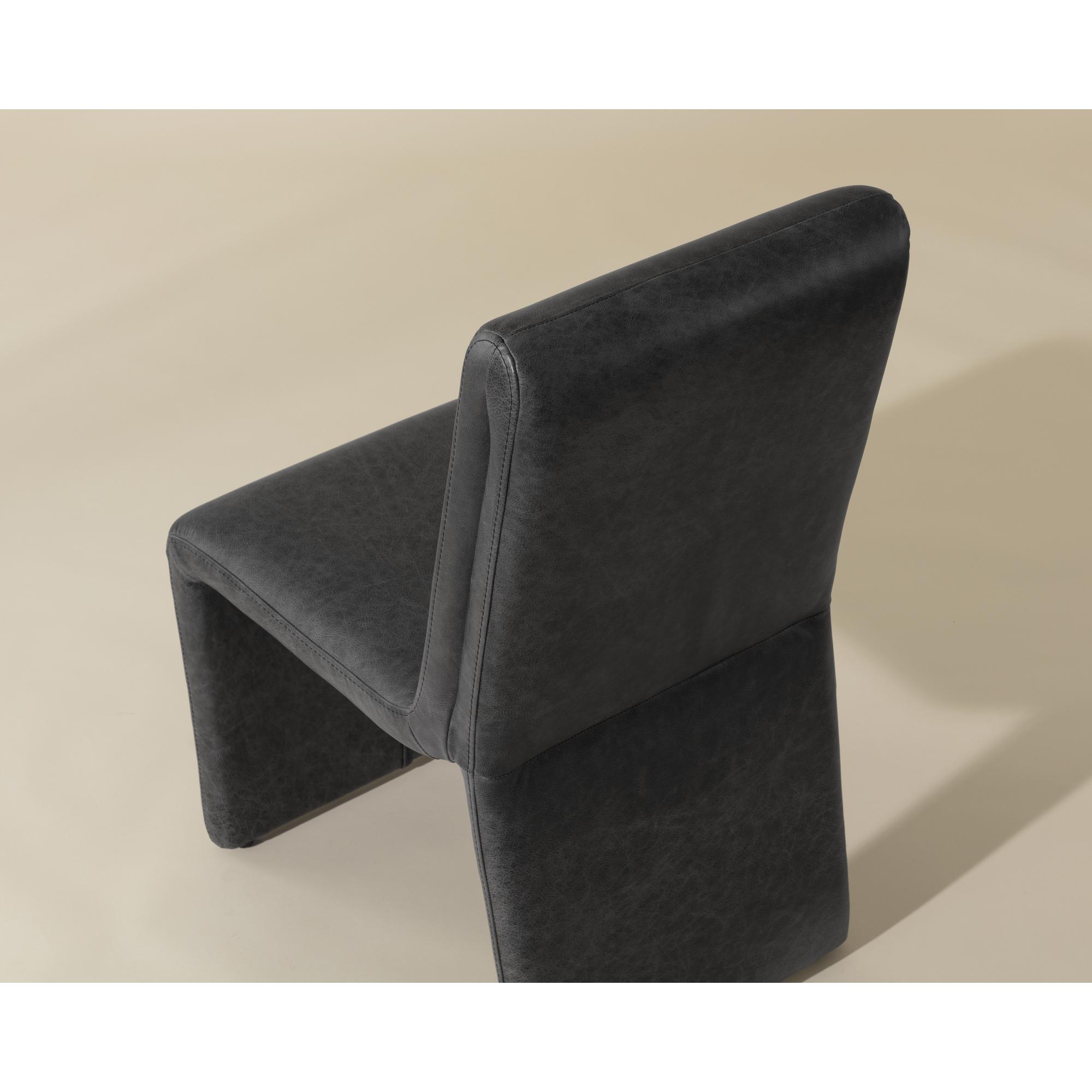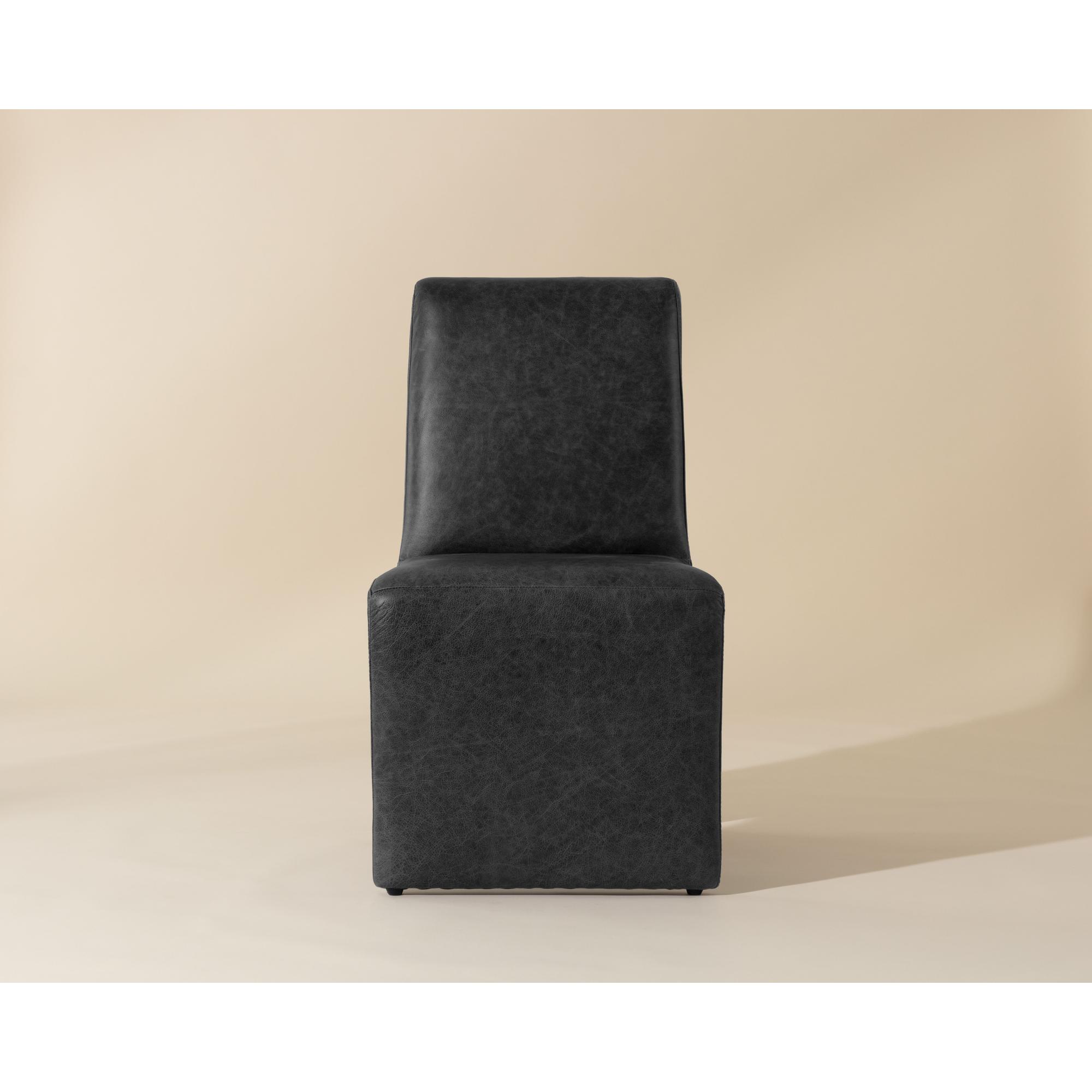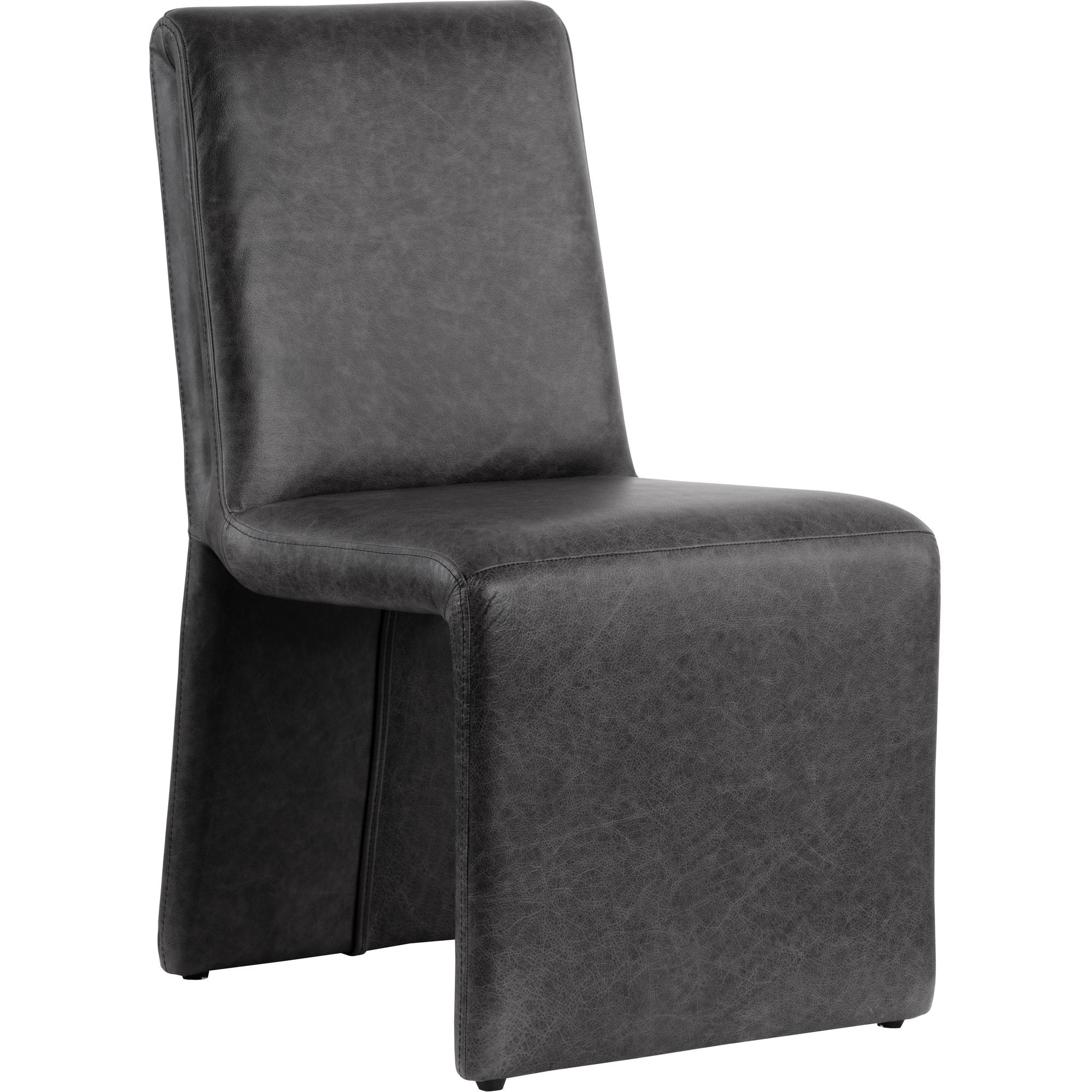 Create an alluring dining space with this modern dining chair that features an intriguing silhouette. Stocked in marseille black leather with a fully upholstered wooden base. Handle with Care: This design has been crafted with 100% leather. Leather is a natural material; as such, colour variations, markings, wrinkles, grooves and light scratches are acceptable and appreciated characteristics. No two pieces are alike. Visit our Product Care page for more information on how to ensure the lasting beauty of this piece.