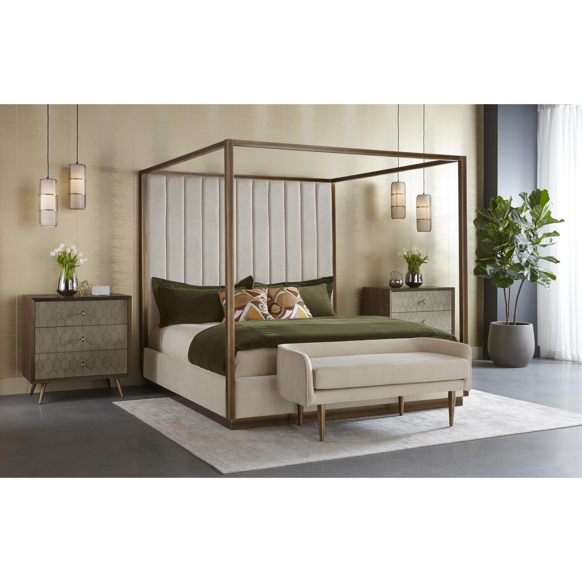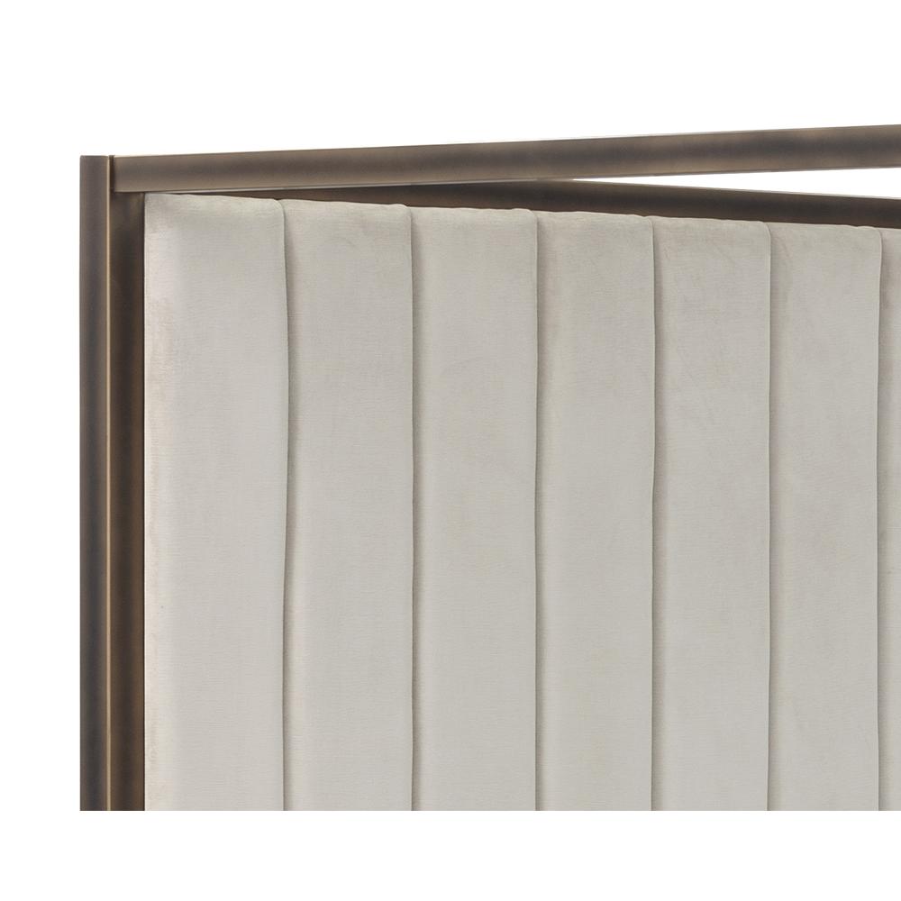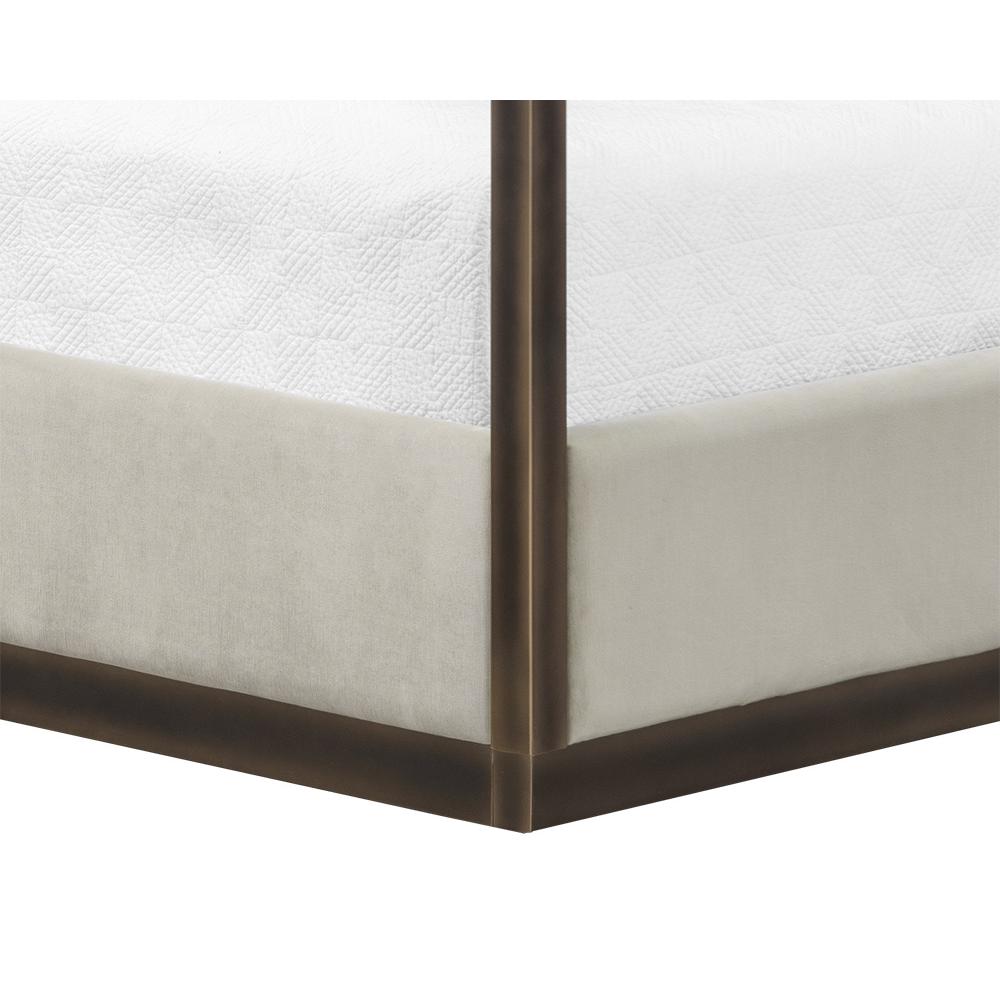 Boasting a regal design, this classic bed features a grand canopy frame that will certainly add a stunning appeal to any bedroom space. Upholstered in our piccolo processo performance fabric and features vertical tufting on the headboard. Completed with a rustic bronze iron frame. No box spring is required and slats are included. Performance fabric is moisture repellent, durable and easy to clean.