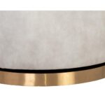 An elegant swivel chair perfect for living, lounge and office spaces. Features a modern barrelback design upholstered in nono cream, petrol and shitake fabrics. A gold stainless steel base with 360 degree swivel completes the design.
