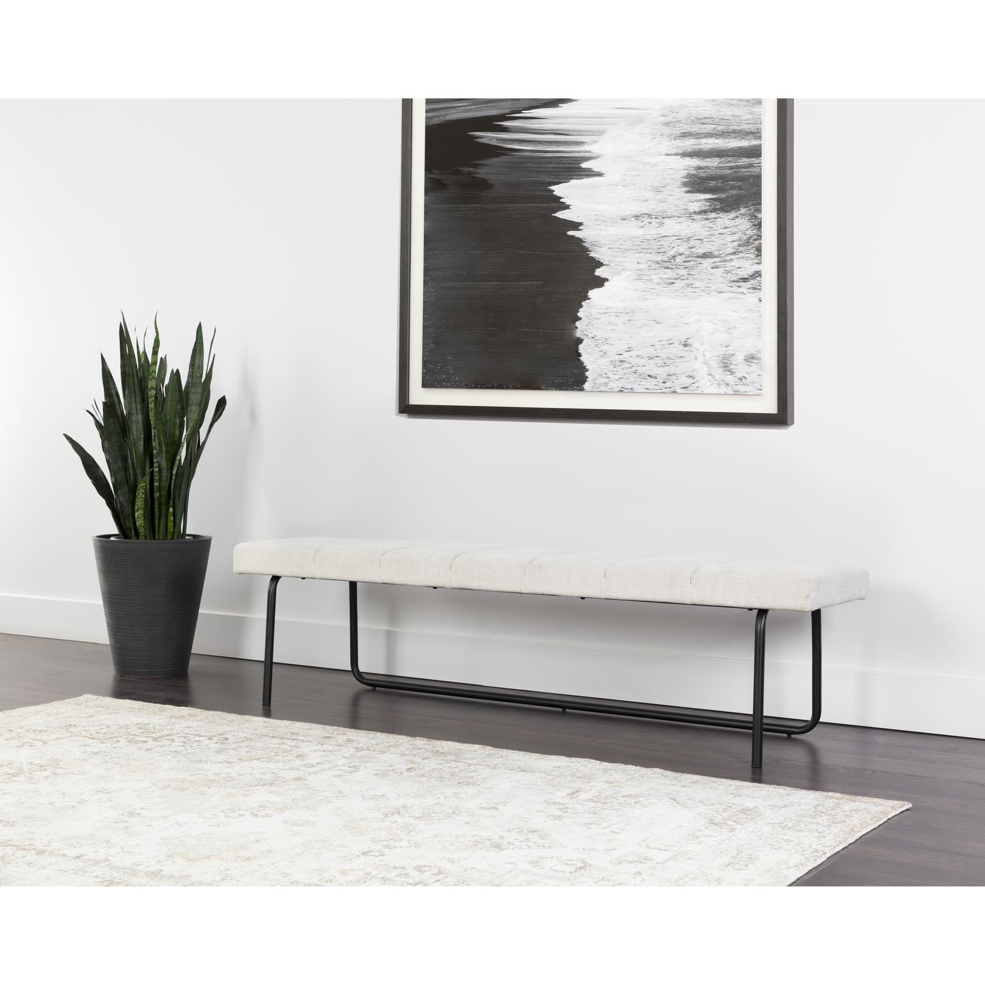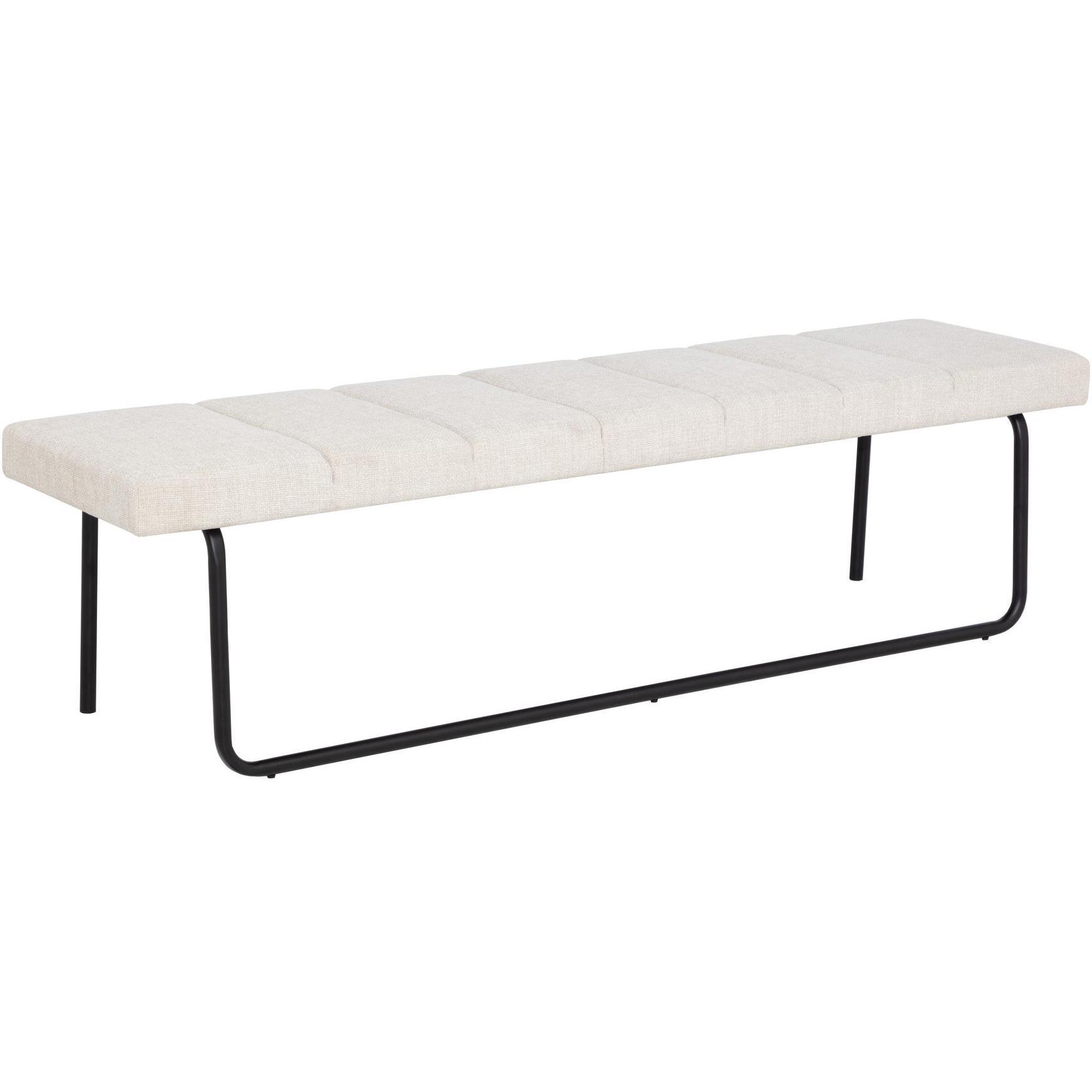 A modern bench that will add function and sleek modern style to any space. Stocked in chacha cream fabric and completed with an alluring matte black powder coated metal base.