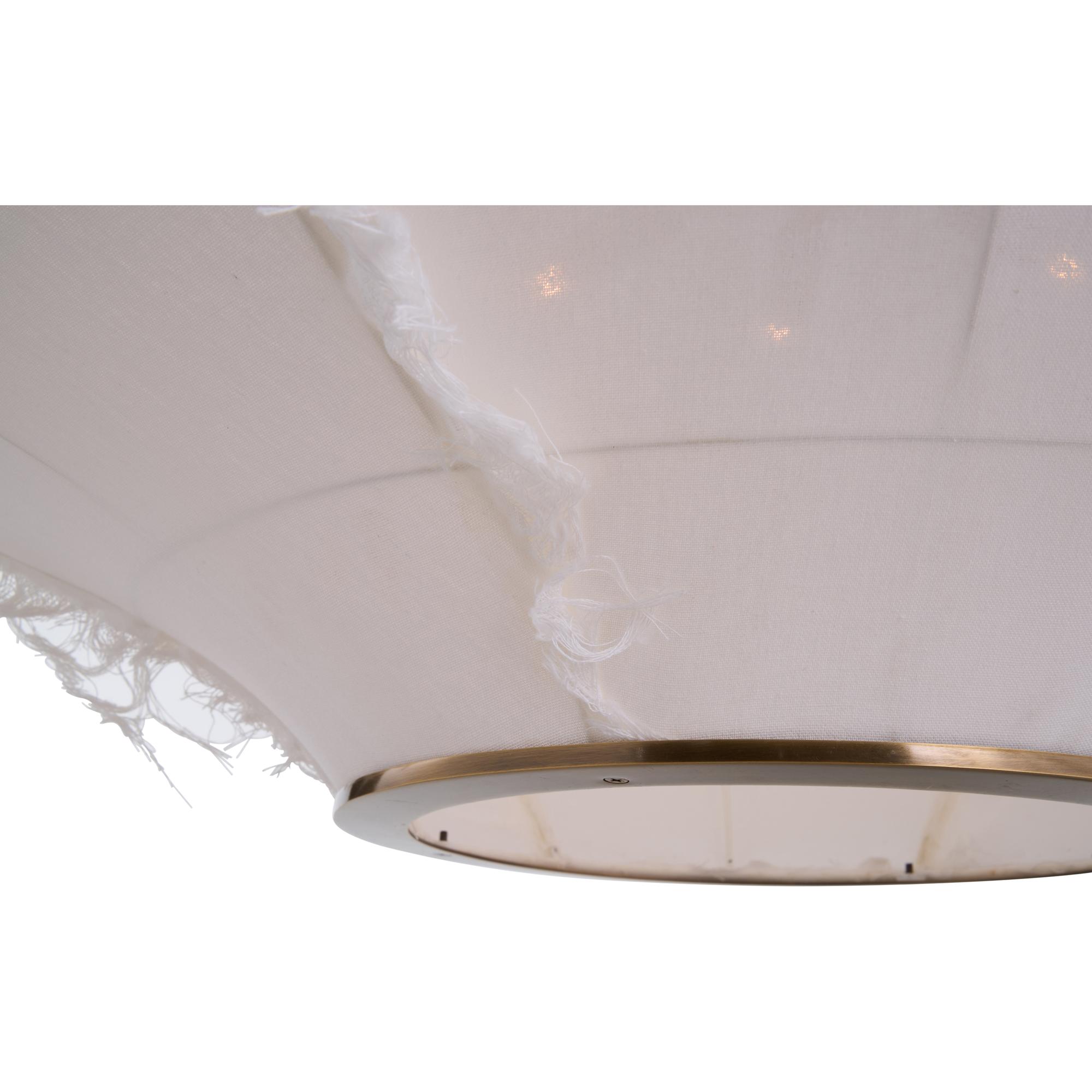 The Cassidy Pendant features a soft linen fabric shade, creating a warm and inviting glow with a delicate, handcrafted feel. Its organic shape and subtle texture bring effortless elegance to any space, making it a perfect statement lighting piece.