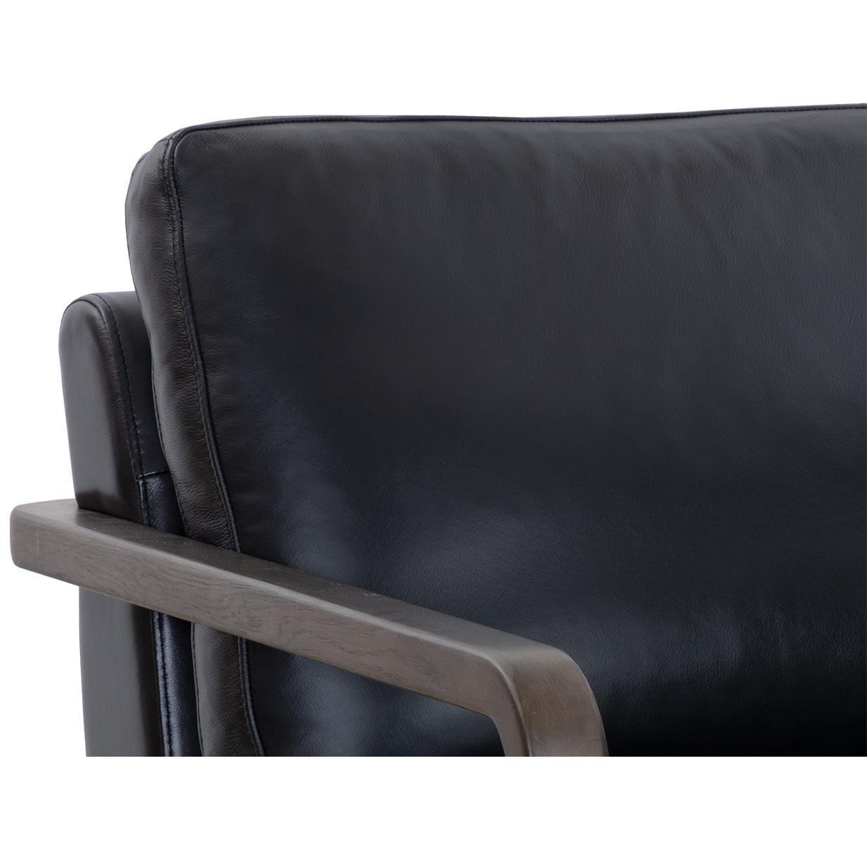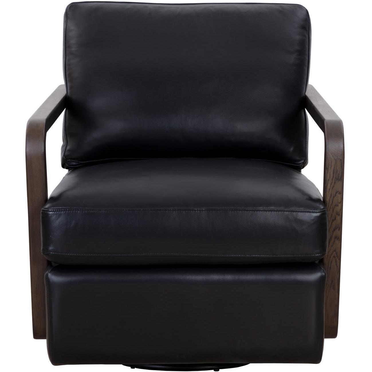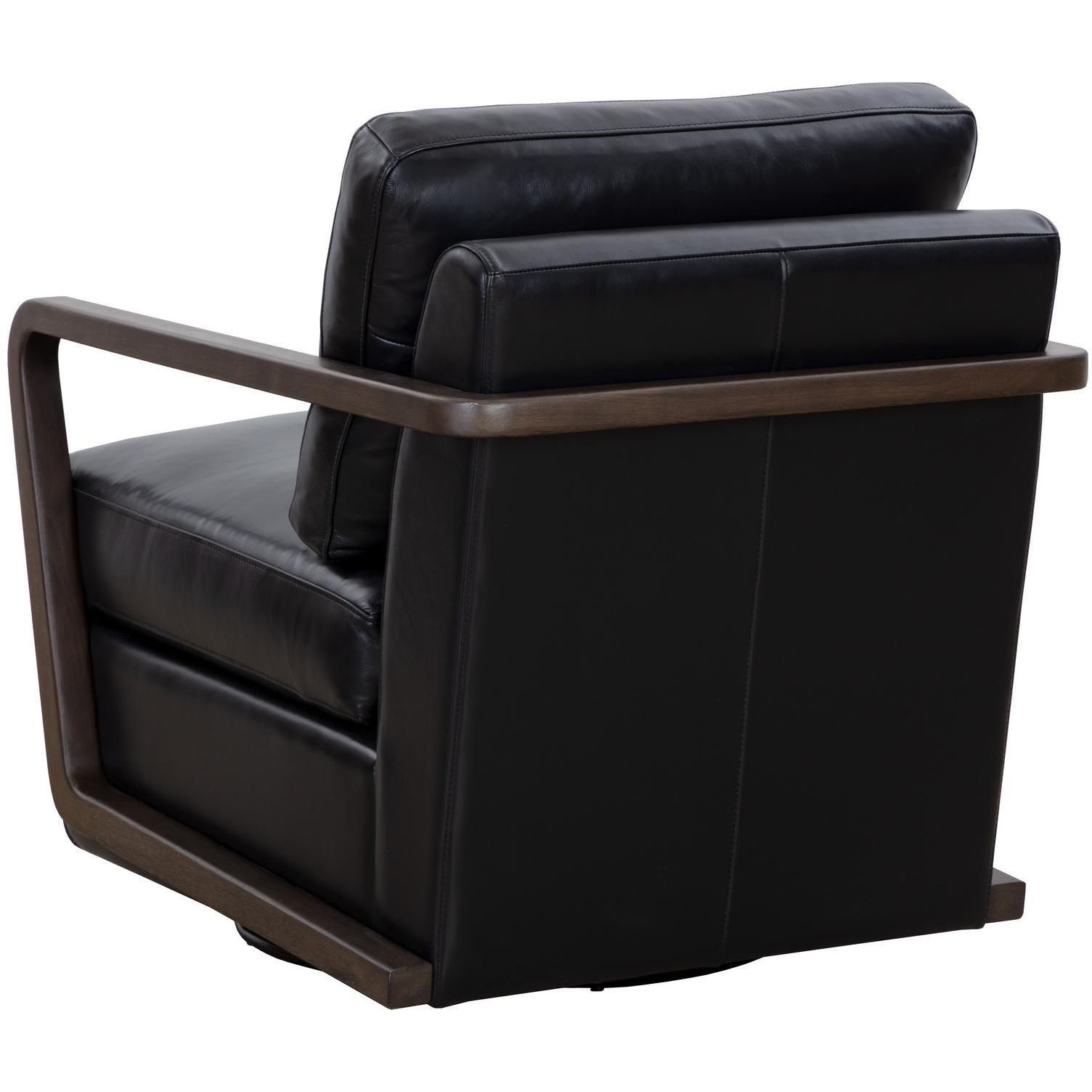 Clean lines make the distinct profile of the Castell Swivel Lounge Chair. Fully upholstered in our cortina black leather for maximum comfort. Brown oak wood arms complete the look. Handle with Care: This design has been crafted with 100% leather. Leather is a natural material; as such, colour variations, markings, wrinkles, grooves and light scratches are acceptable and appreciated characteristics. No two pieces are alike. Visit our Product Care page for more information on how to ensure the lasting beauty of this piece. As wood is an organic, porous material, these pieces will contain natural variation of texture and may also exhibit fine indentations and cracks. Wood pieces will also display a disparity of colour and grain, and visible knots and burls that add to the character of each piece.
