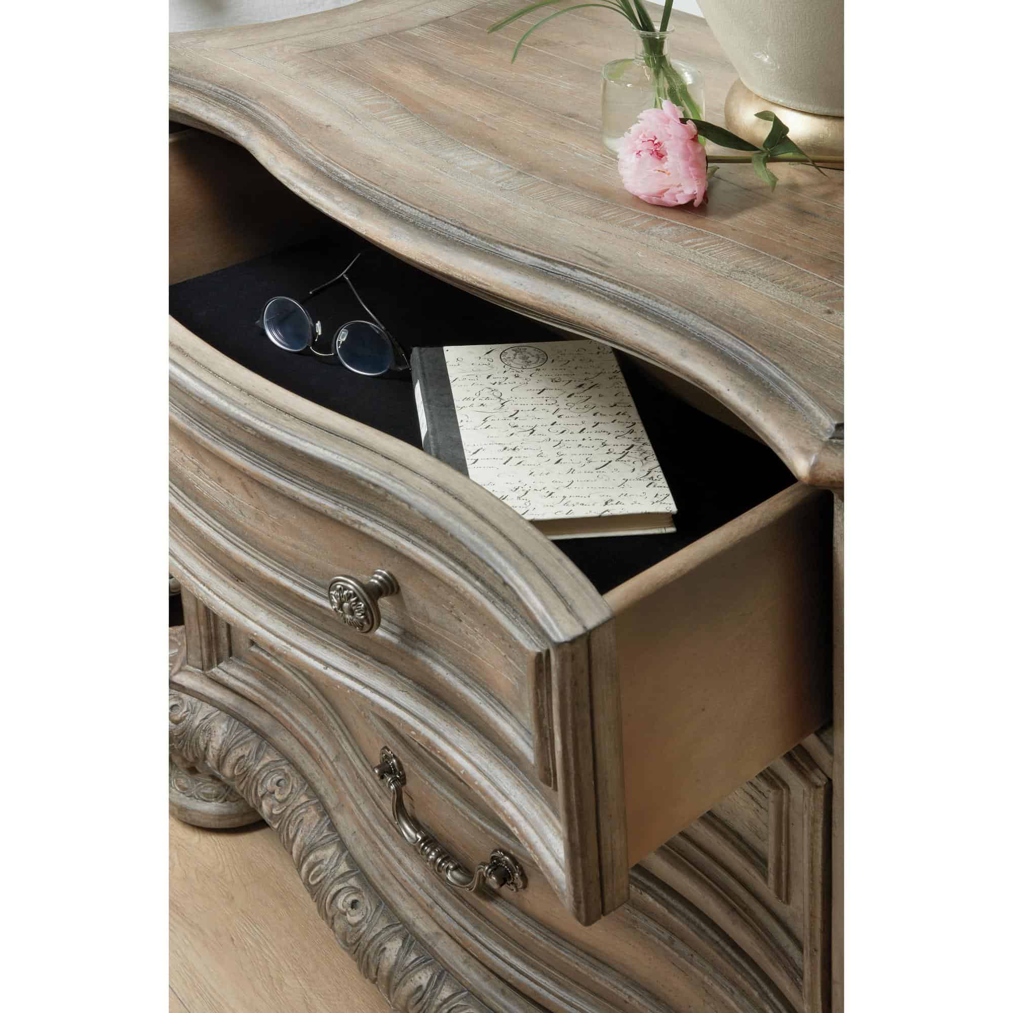 Material: Pecan, Quartered Walnut, Quartered Black Walnut, Quartered Ash and Maple Veneers, Cedar Drawer Bottom, Resin, Light, Outlet and Felt Panel