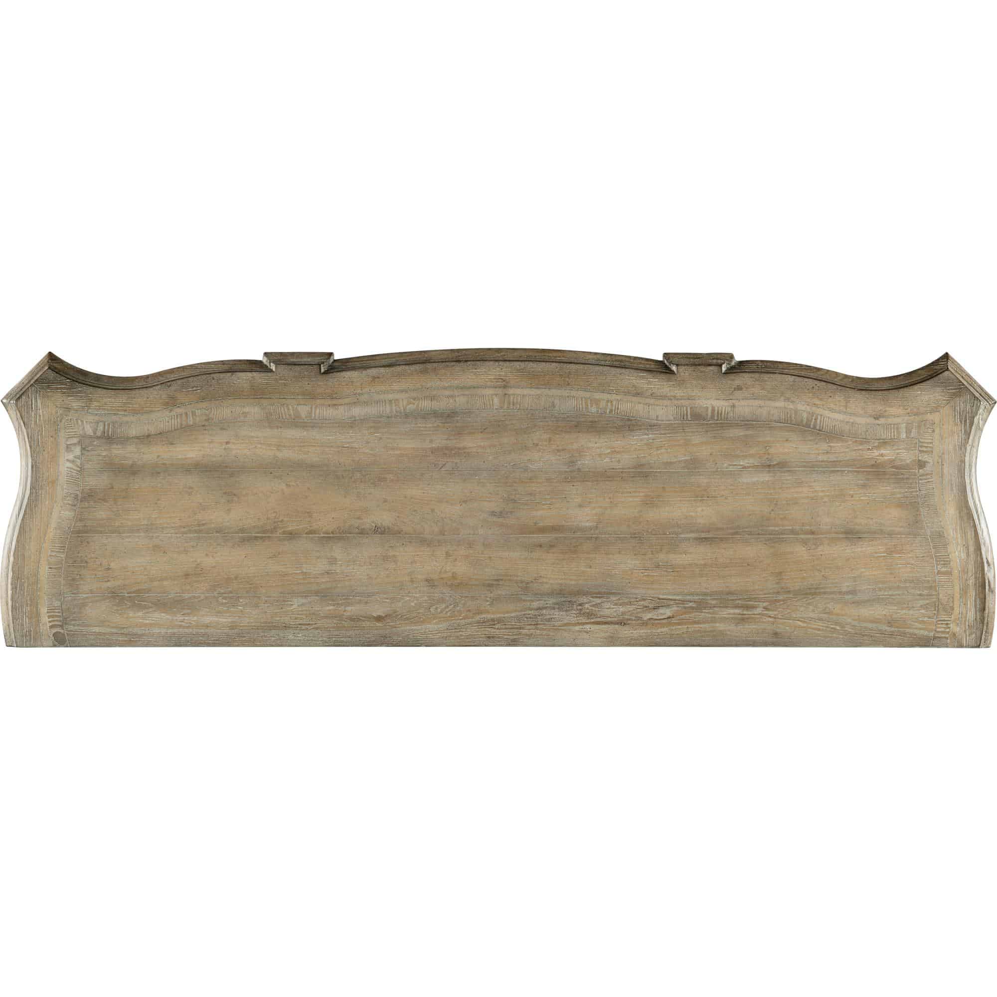 Finish: Antique Slate: a mid-tone brown finish with a beautiful patina. Distressing includes sandblasting, drawknife, wormholes and stone. Knob and bail pull hardware in an antique silver finish.